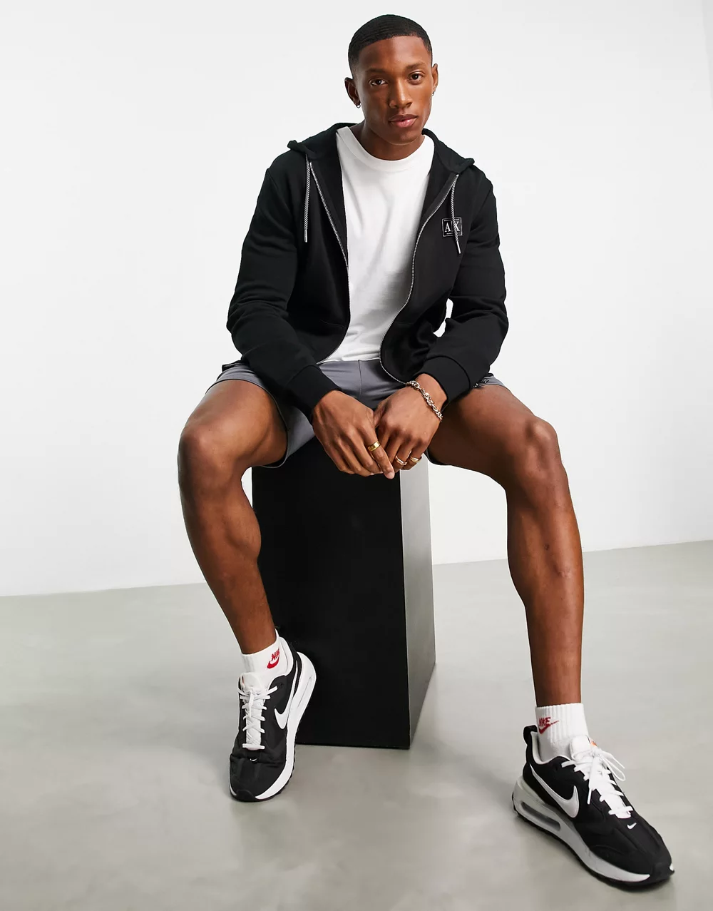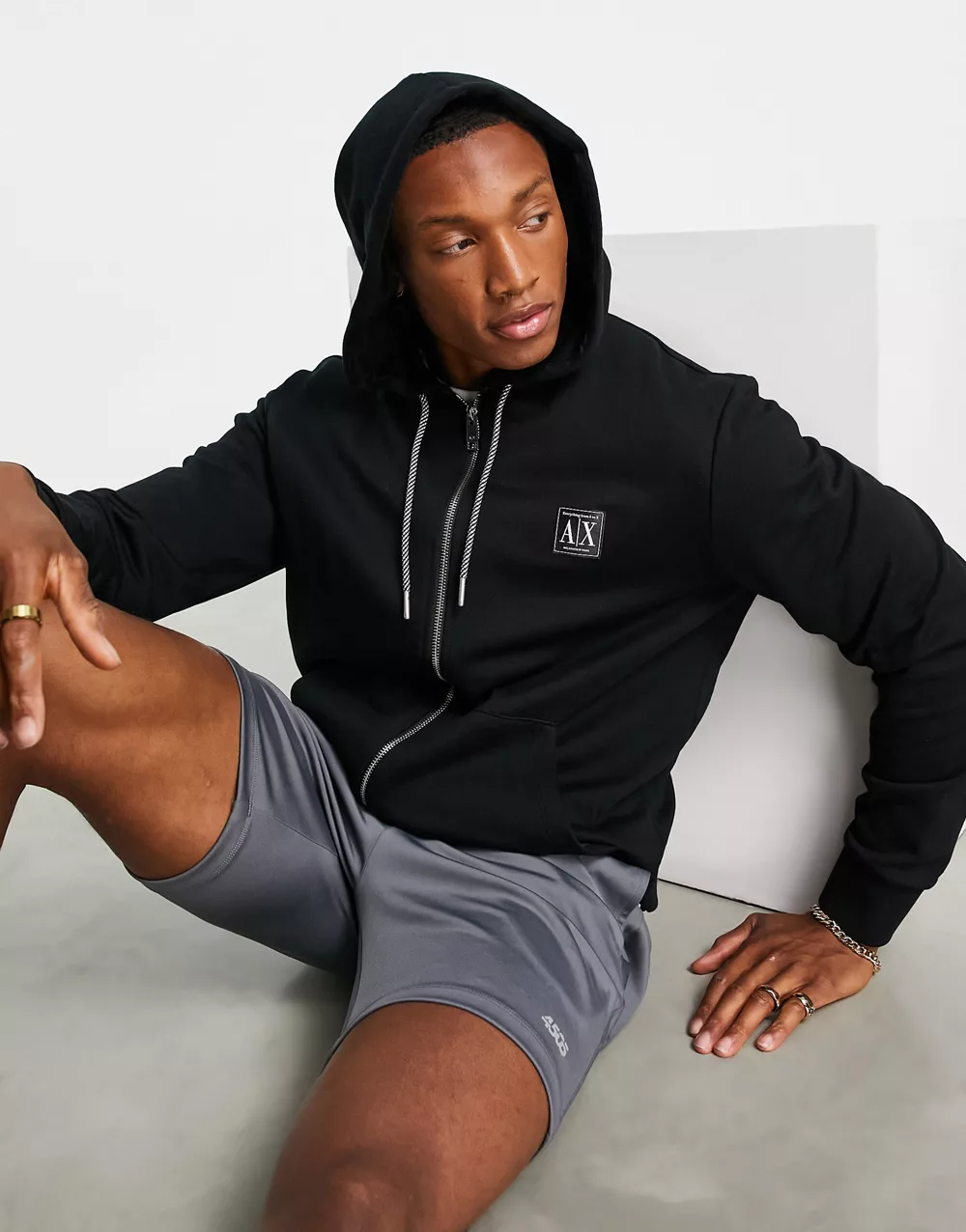 - Armani Exchange small box AX logo print zip through hoodie in black