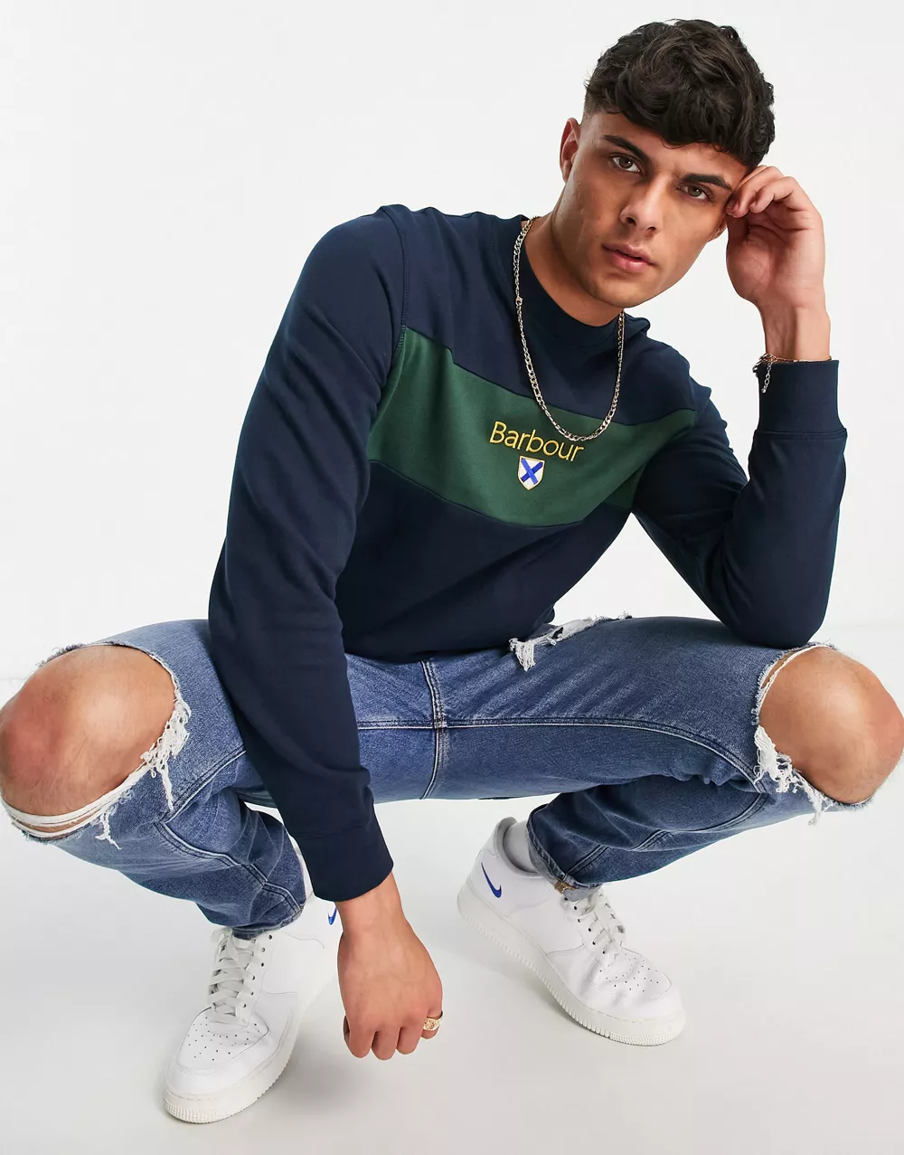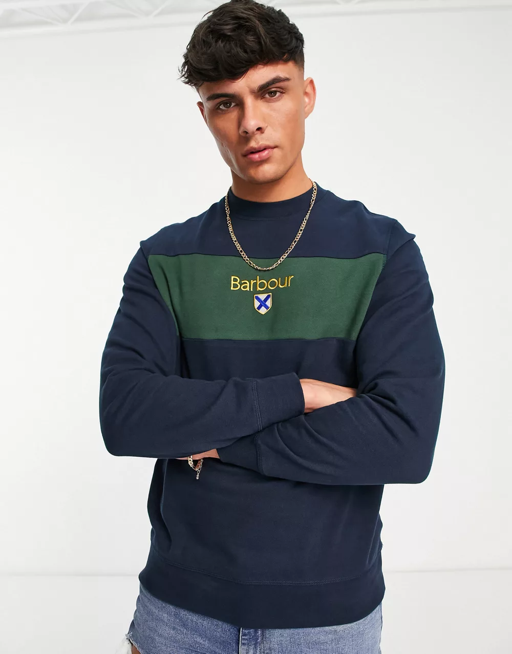 - Barbour Honour panel crew neck sweatshirt in navy