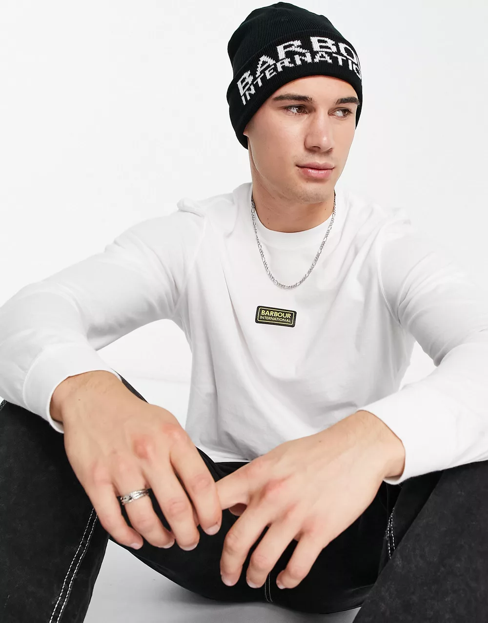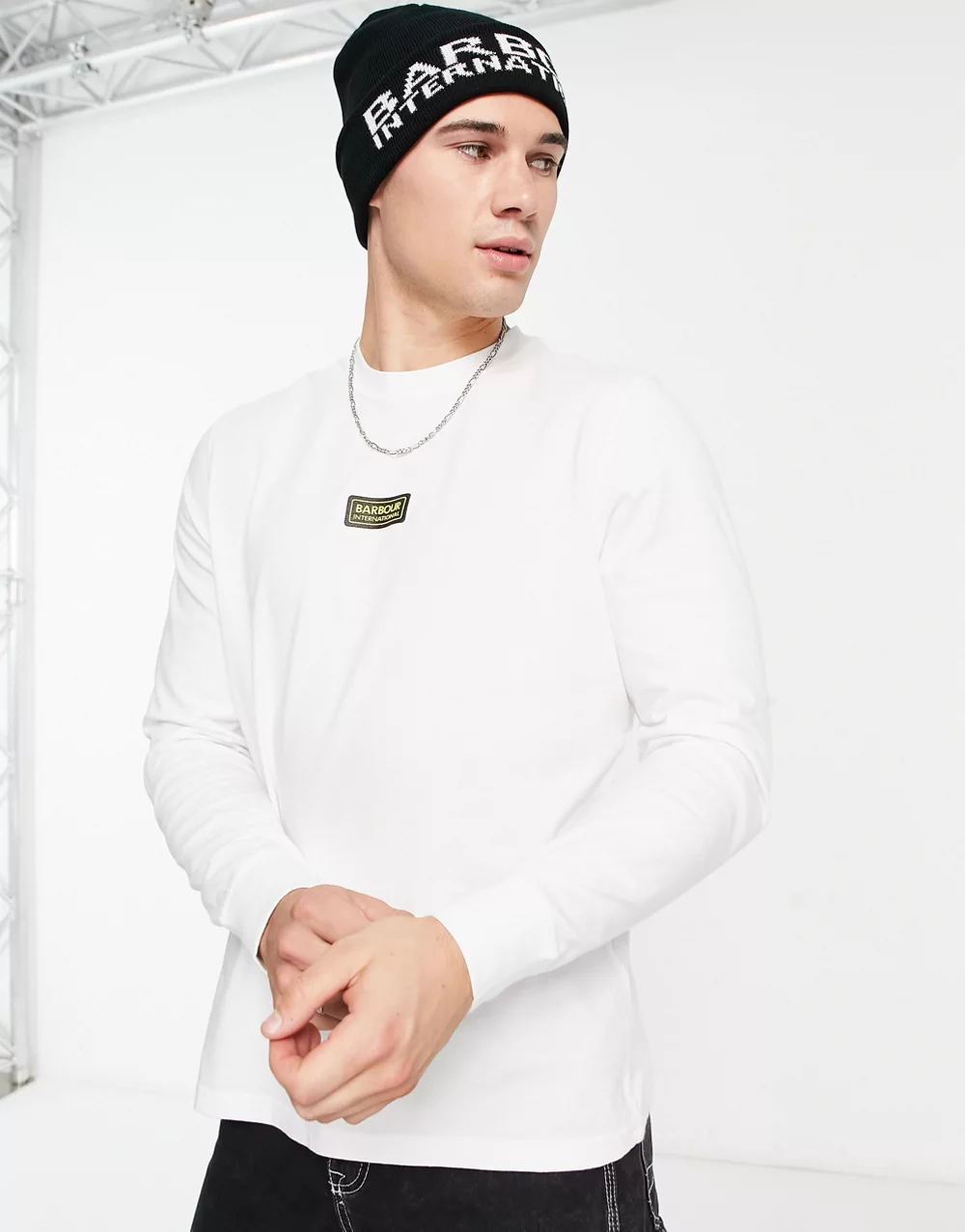 - Barbour International Minard back print long sleeve top in white