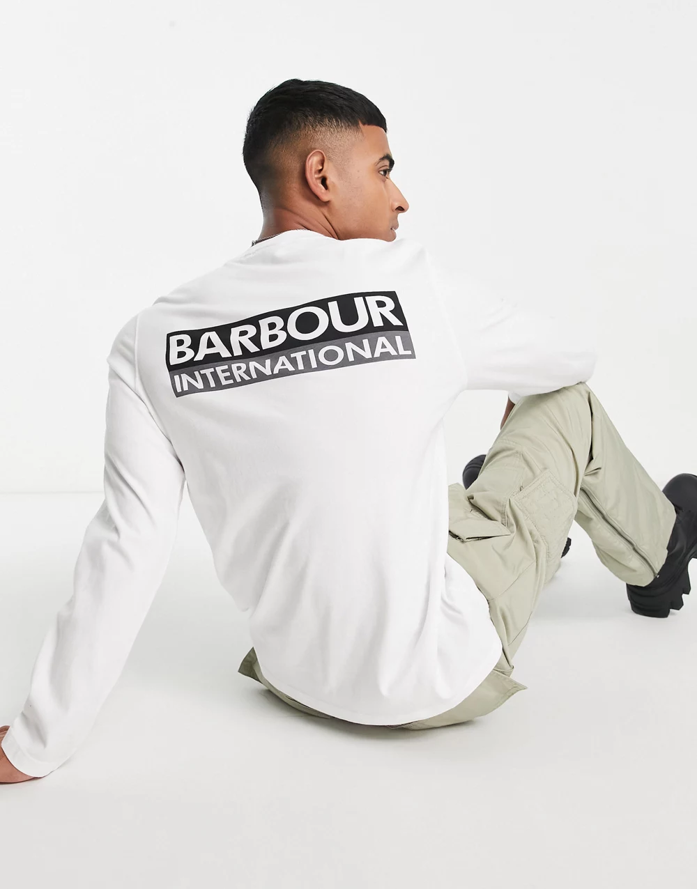 - Barbour International Murphy back print logo long sleeve top in white