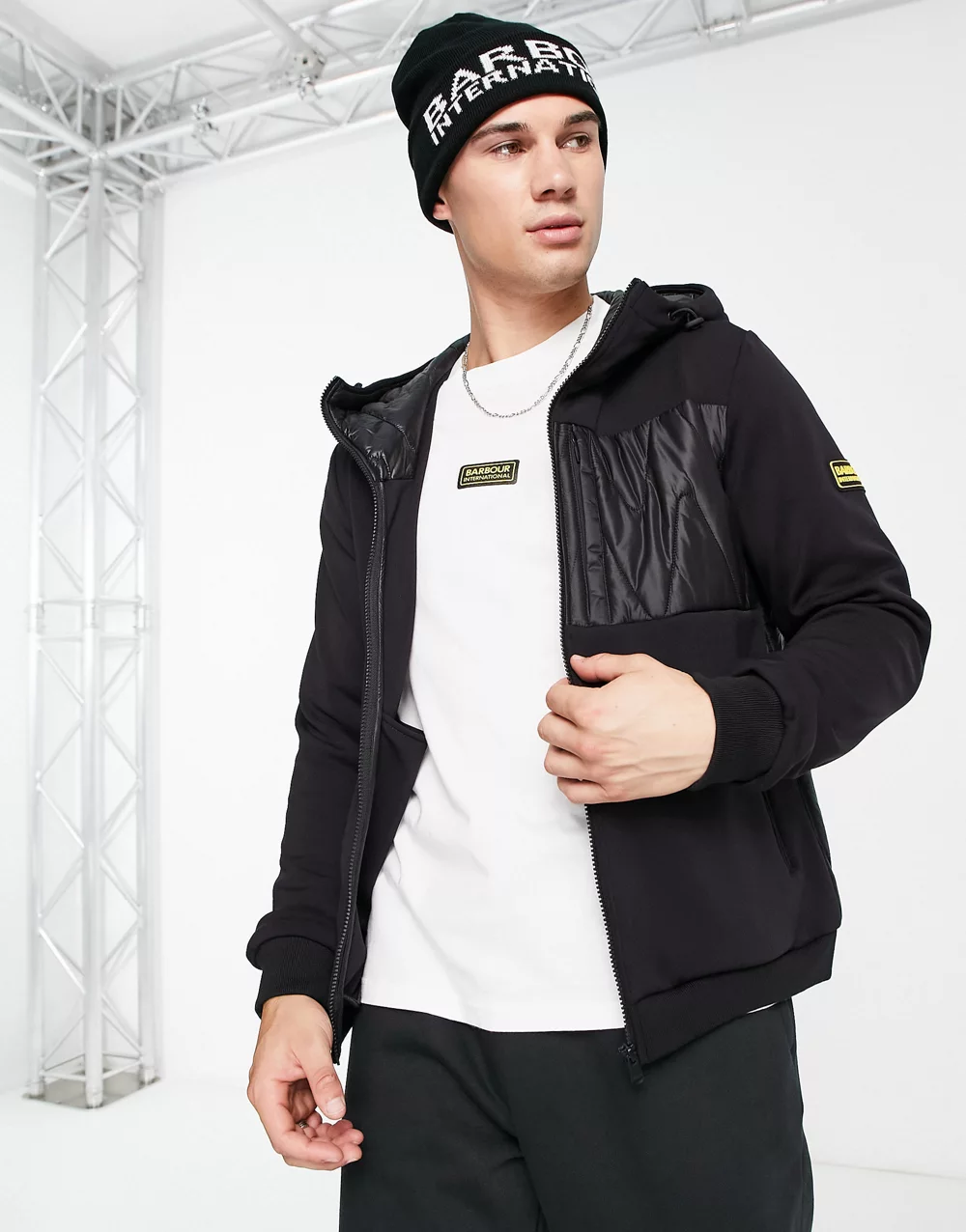 - Barbour International Racer quilted zip hoodie in black