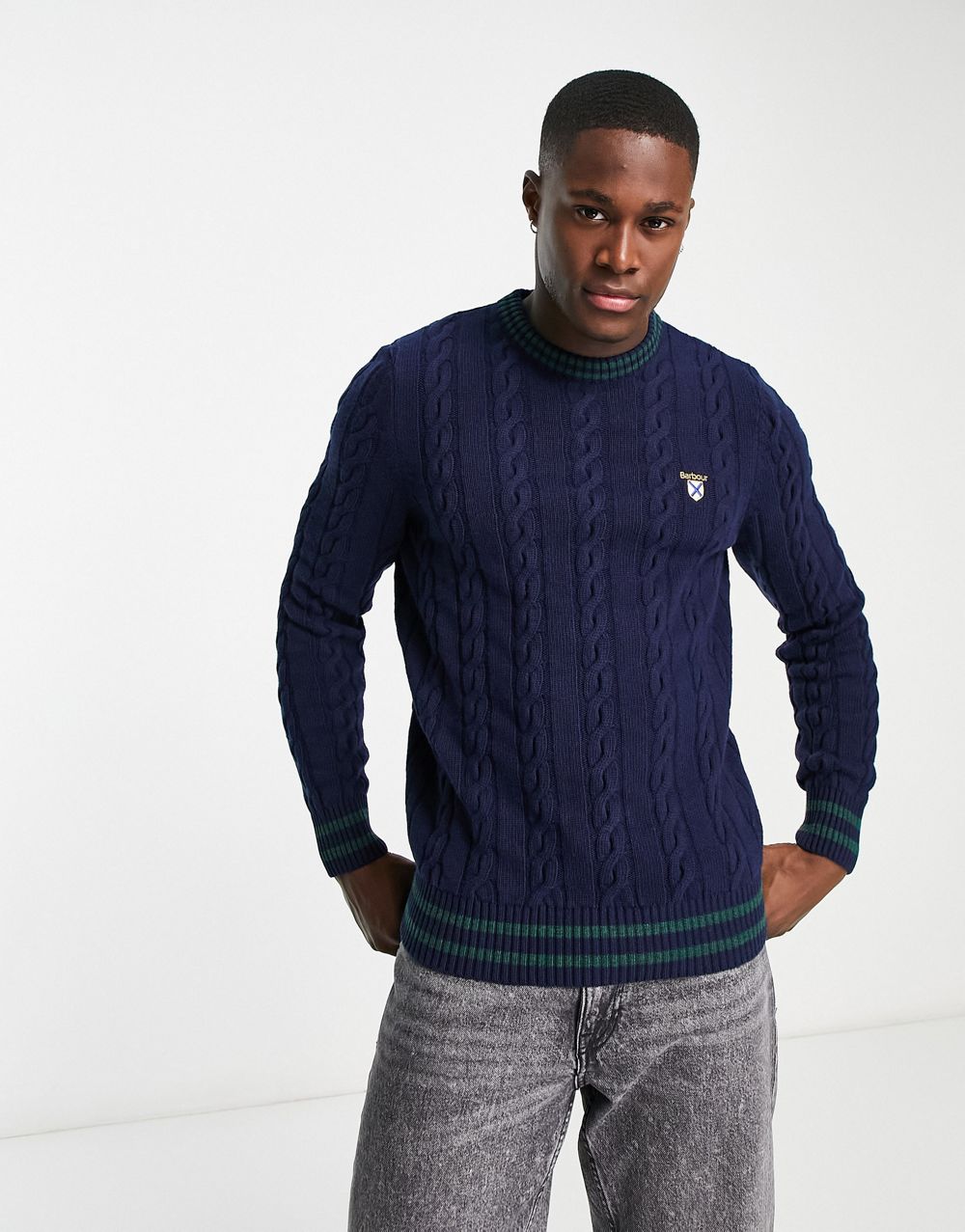 Barbour Beacon large tartan logo crew neck sweatshirt in green