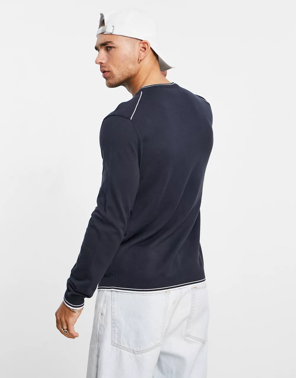 Armani Exchange zip through knitted hoodie with contrast logo in black