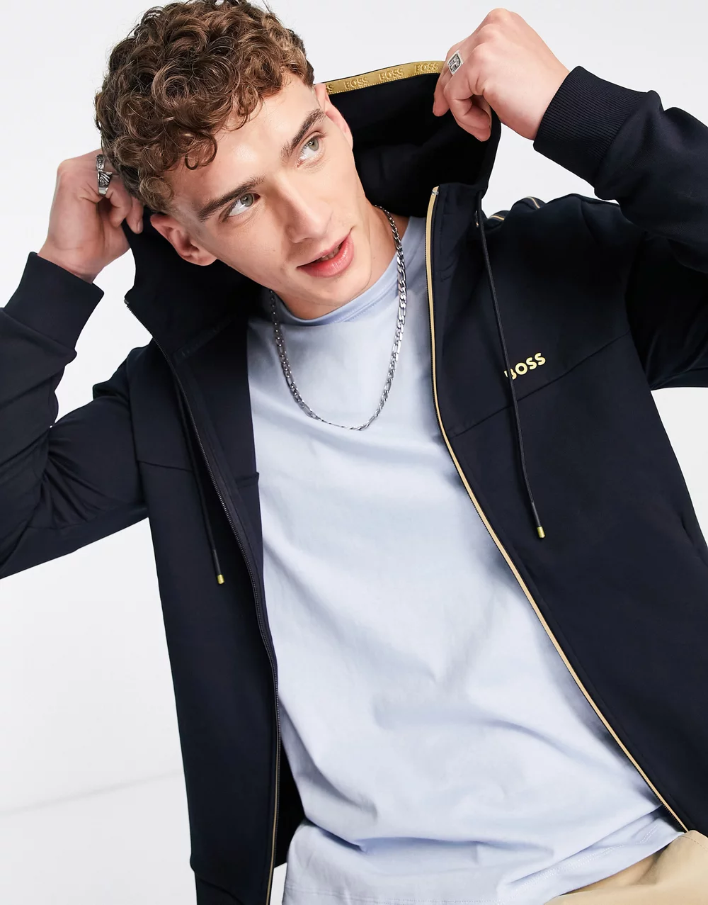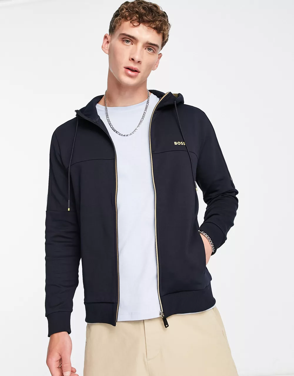 - BOSS Green Saggy zip through hoodie in navy