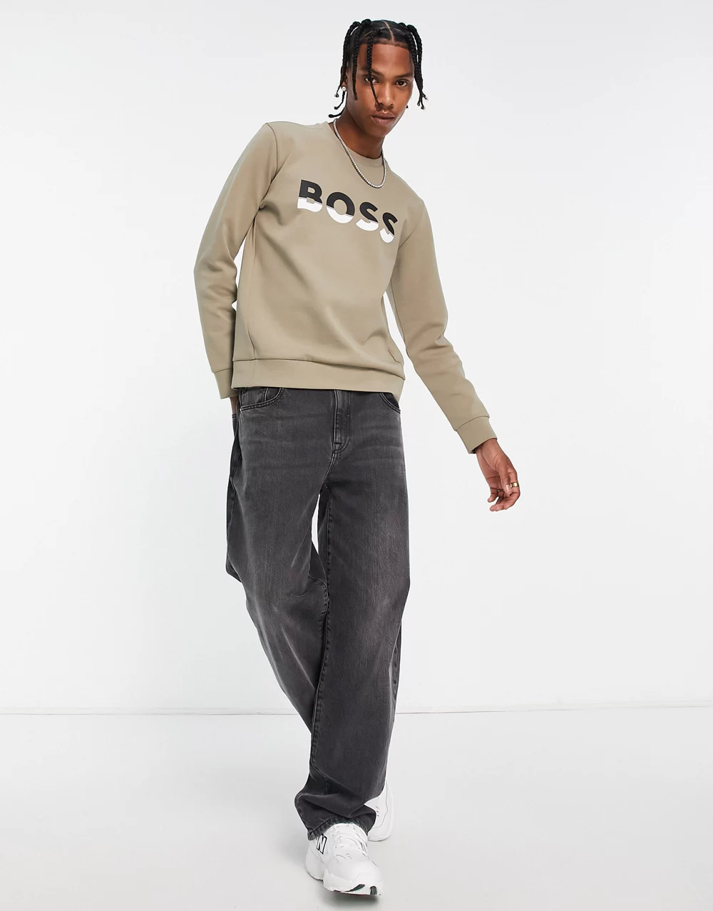 - BOSS Green Salbo 1 large logo sweatshirt in beige