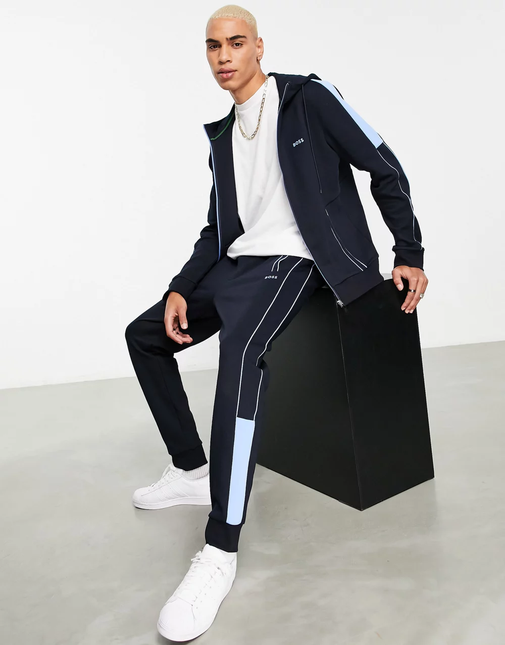 - BOSS Green zip through hoodie and joggers tracksuit set in navy