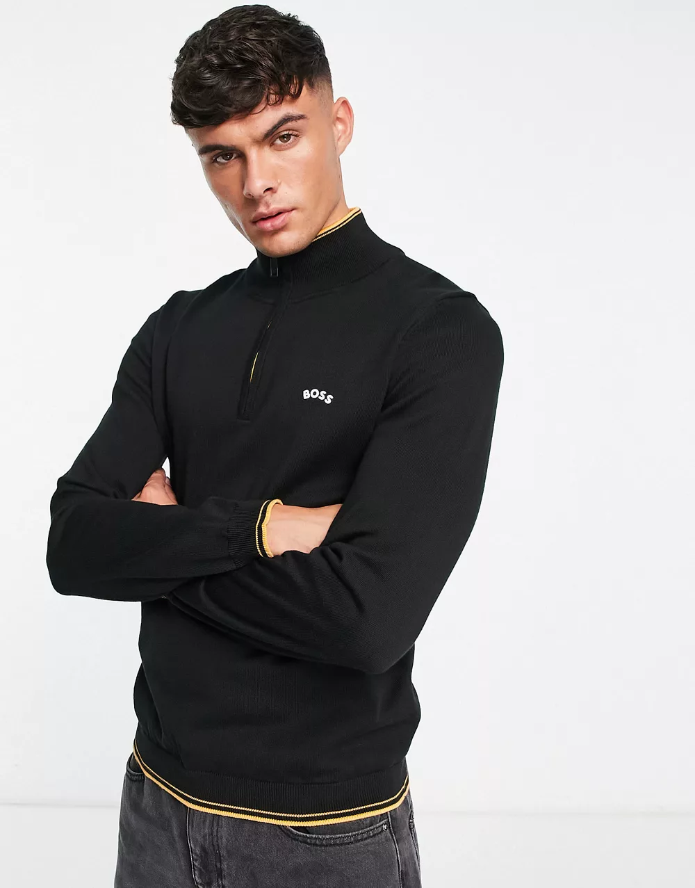 - BOSS Green Zitom_W22 1/4 zip jumper in black
