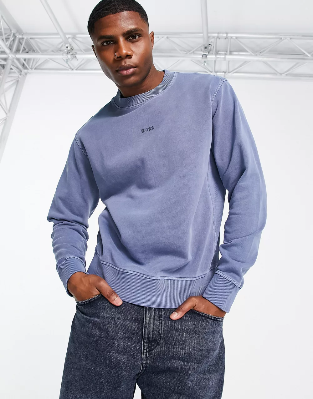 - BOSS Orange Wefade sweatshirt in washed blue