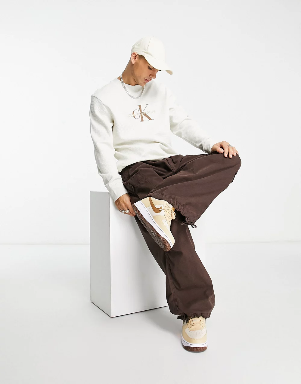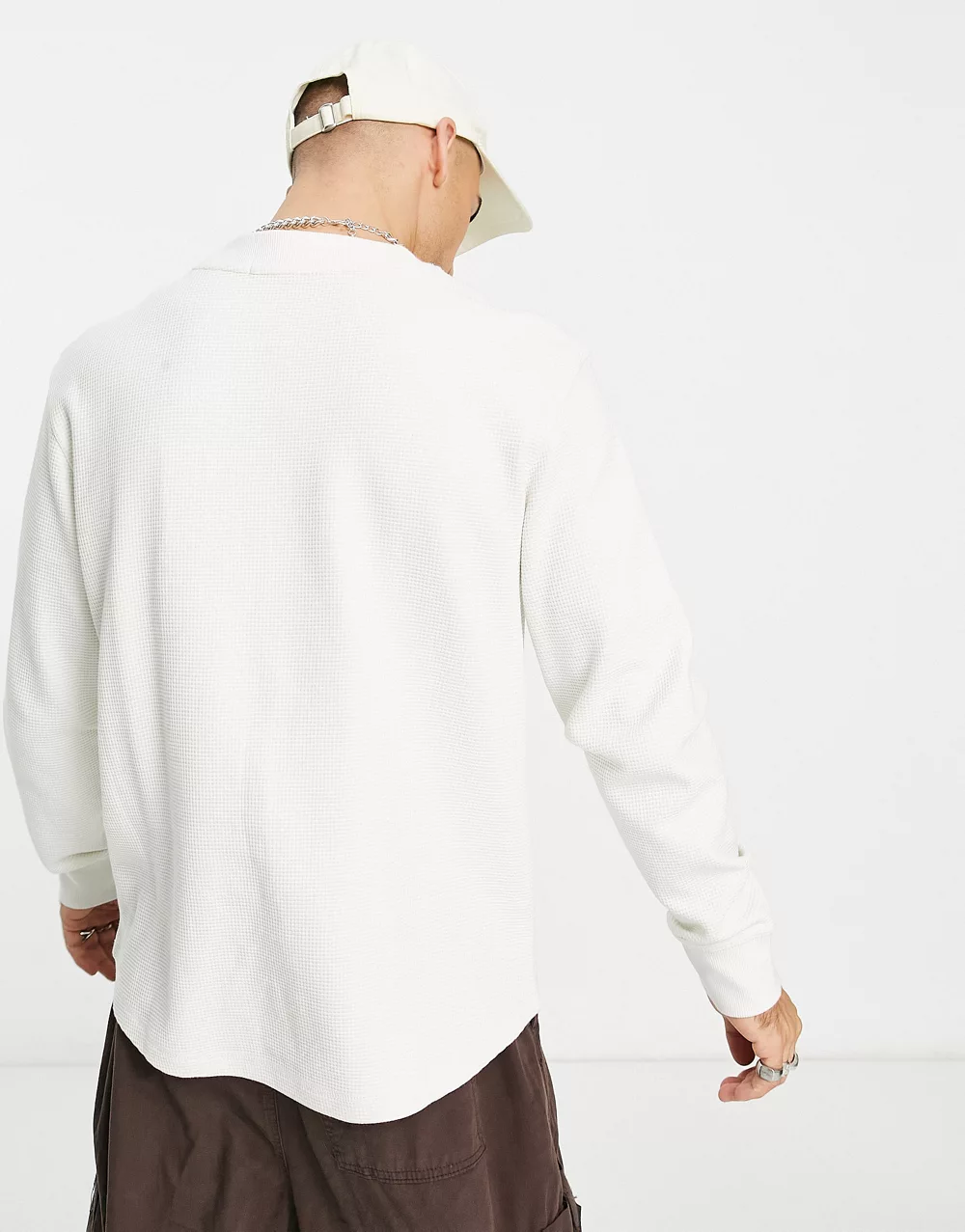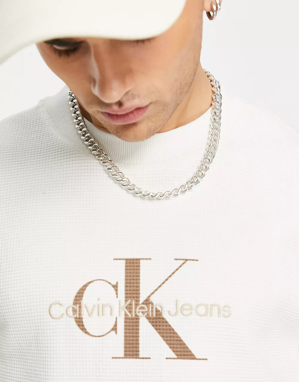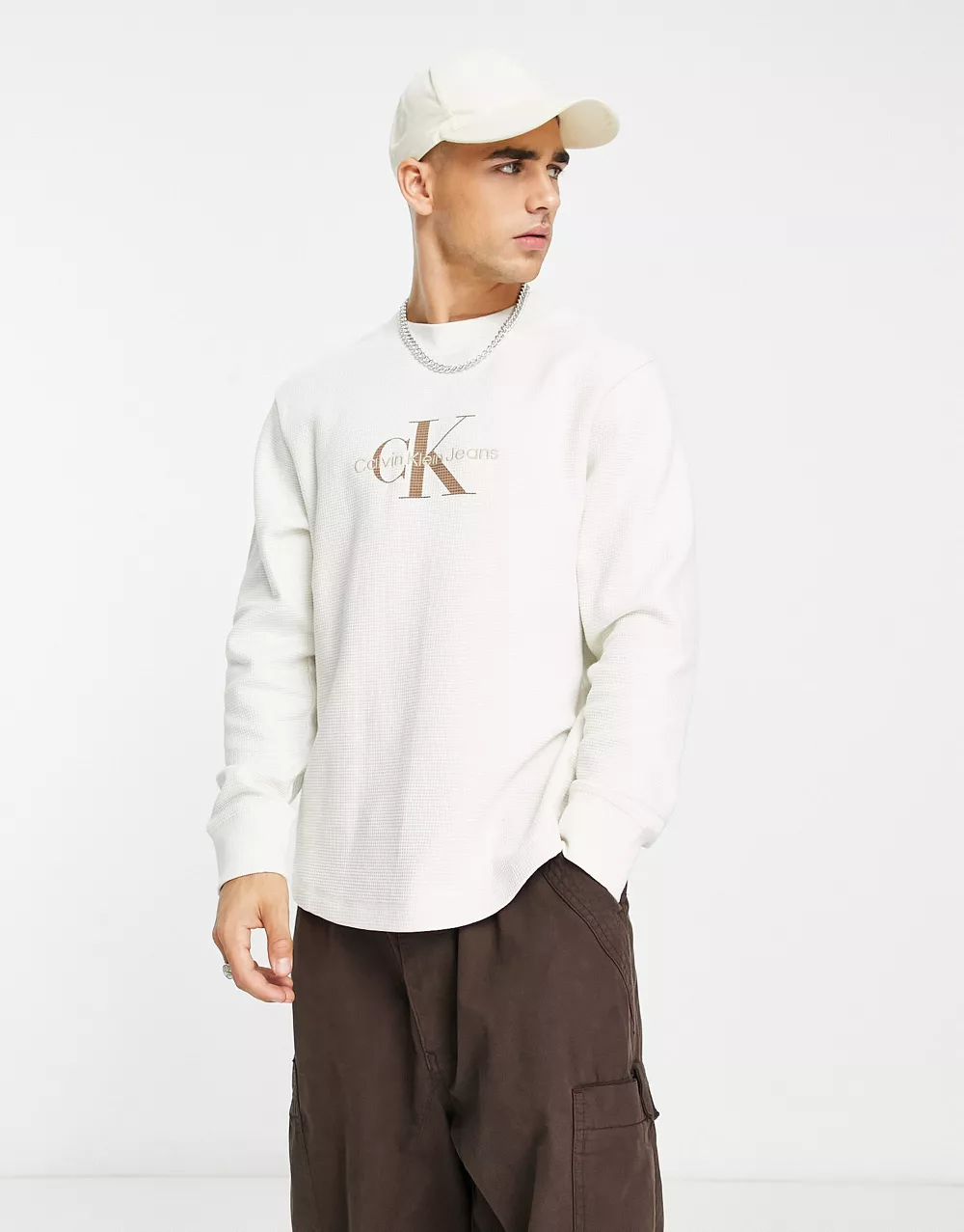 - Calvin Klein Jeans archival monologo waffle relaxed fit long sleeve top in ivory