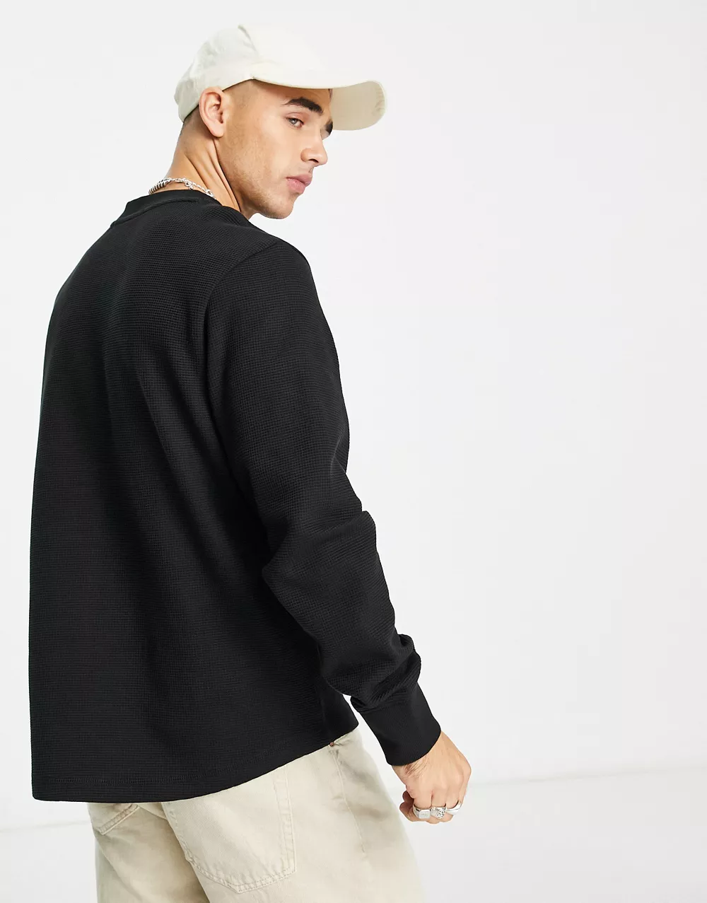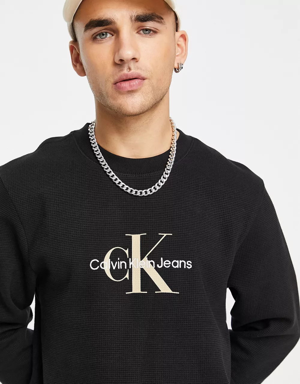 - Calvin Klein Jeans archival monologo waffle relaxed fit sweatshirt in black