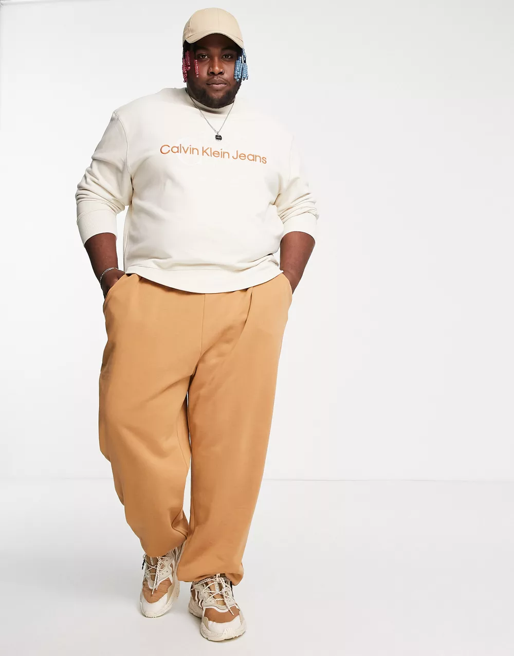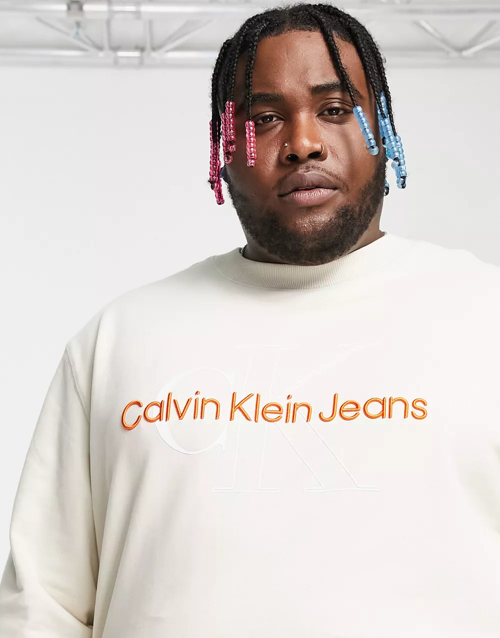 - Calvin Klein Jeans Big & Tall two tone monogram sweatshirt relaxed fit in stone