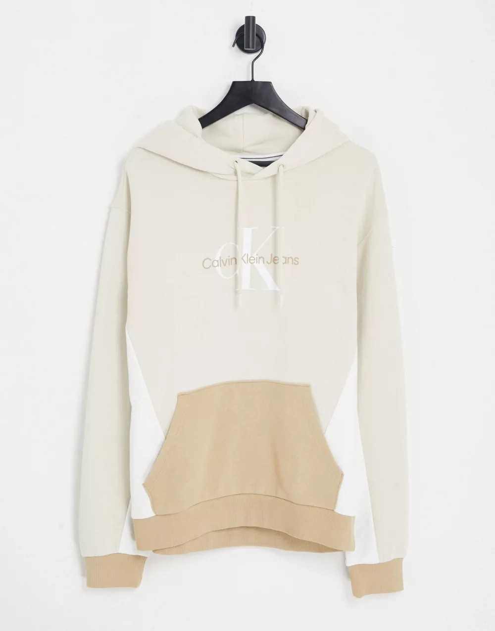 - Calvin Klein Jeans blocking capsule cotton monogram hoodie in stone exclusive to ASOS
