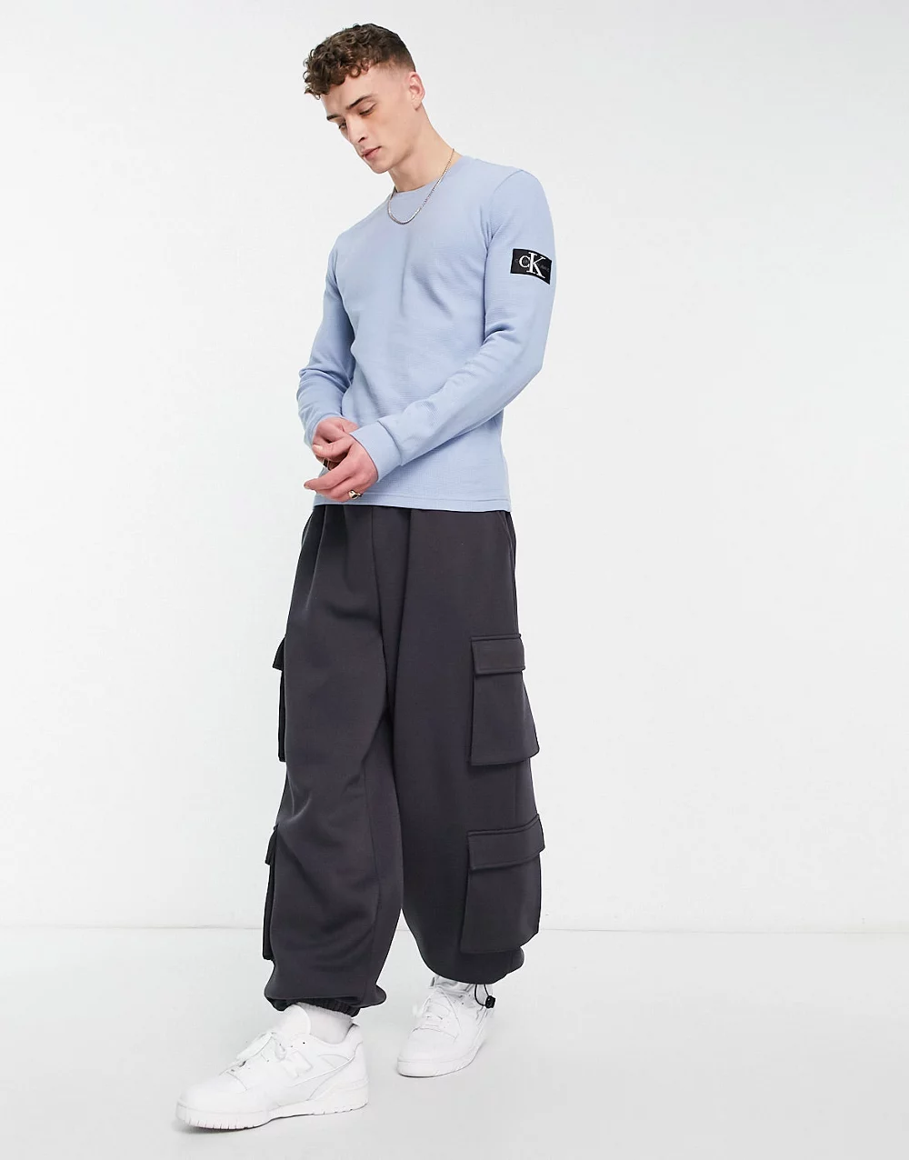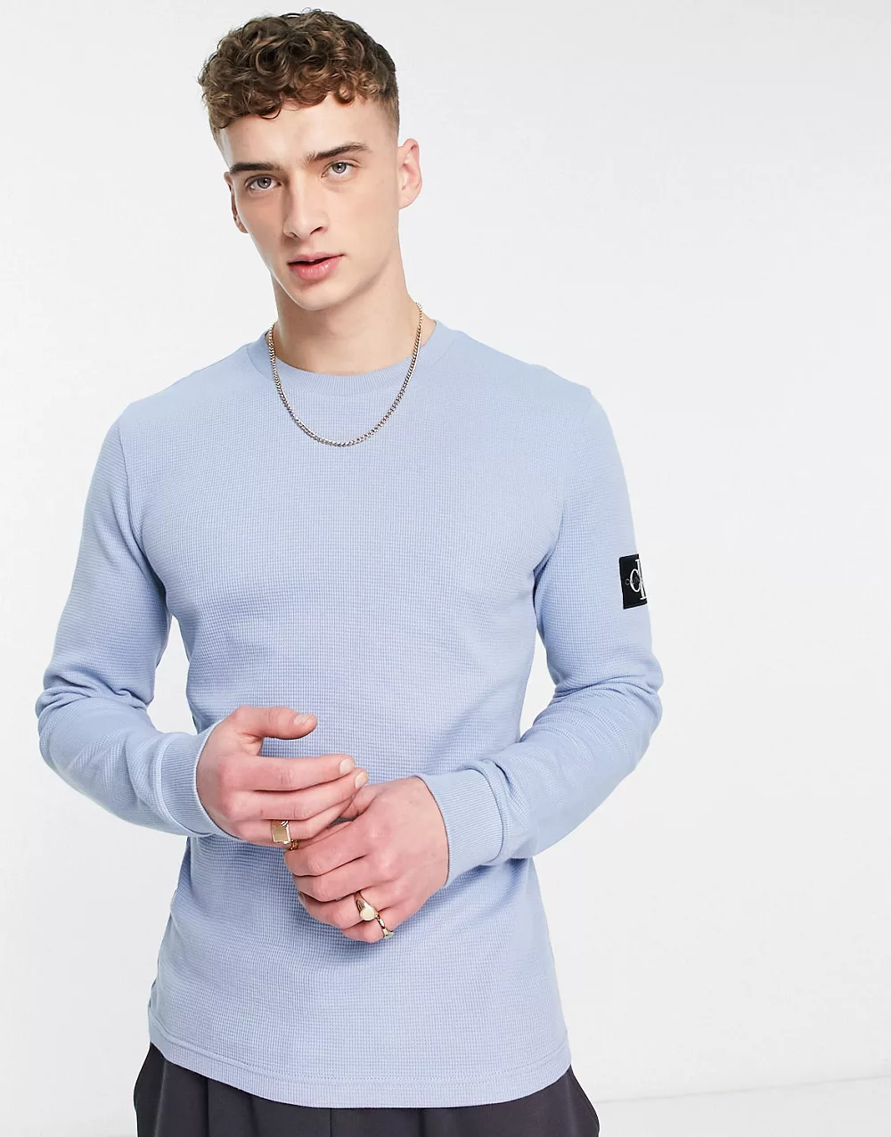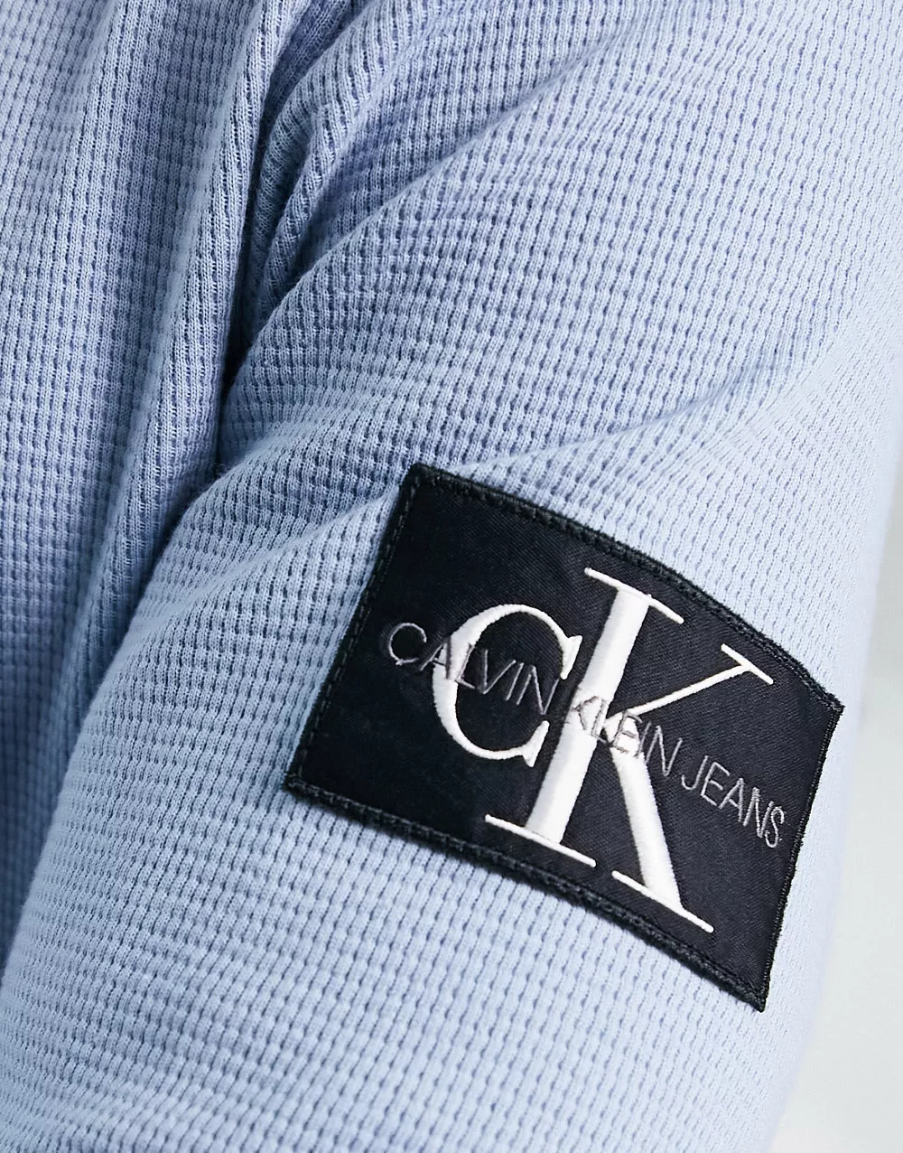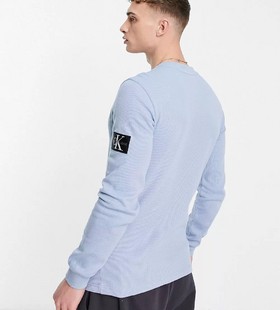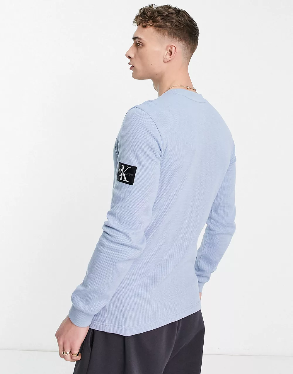 - Calvin Klein Jeans monologo badge waffle slim fit long sleeve top in light blue