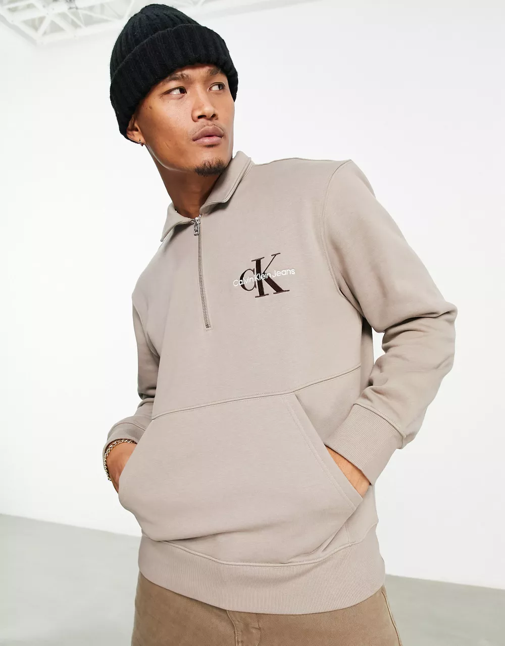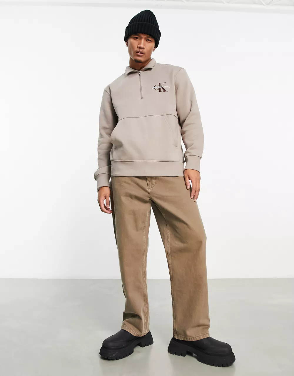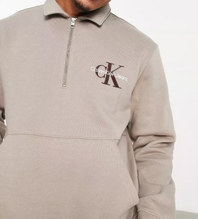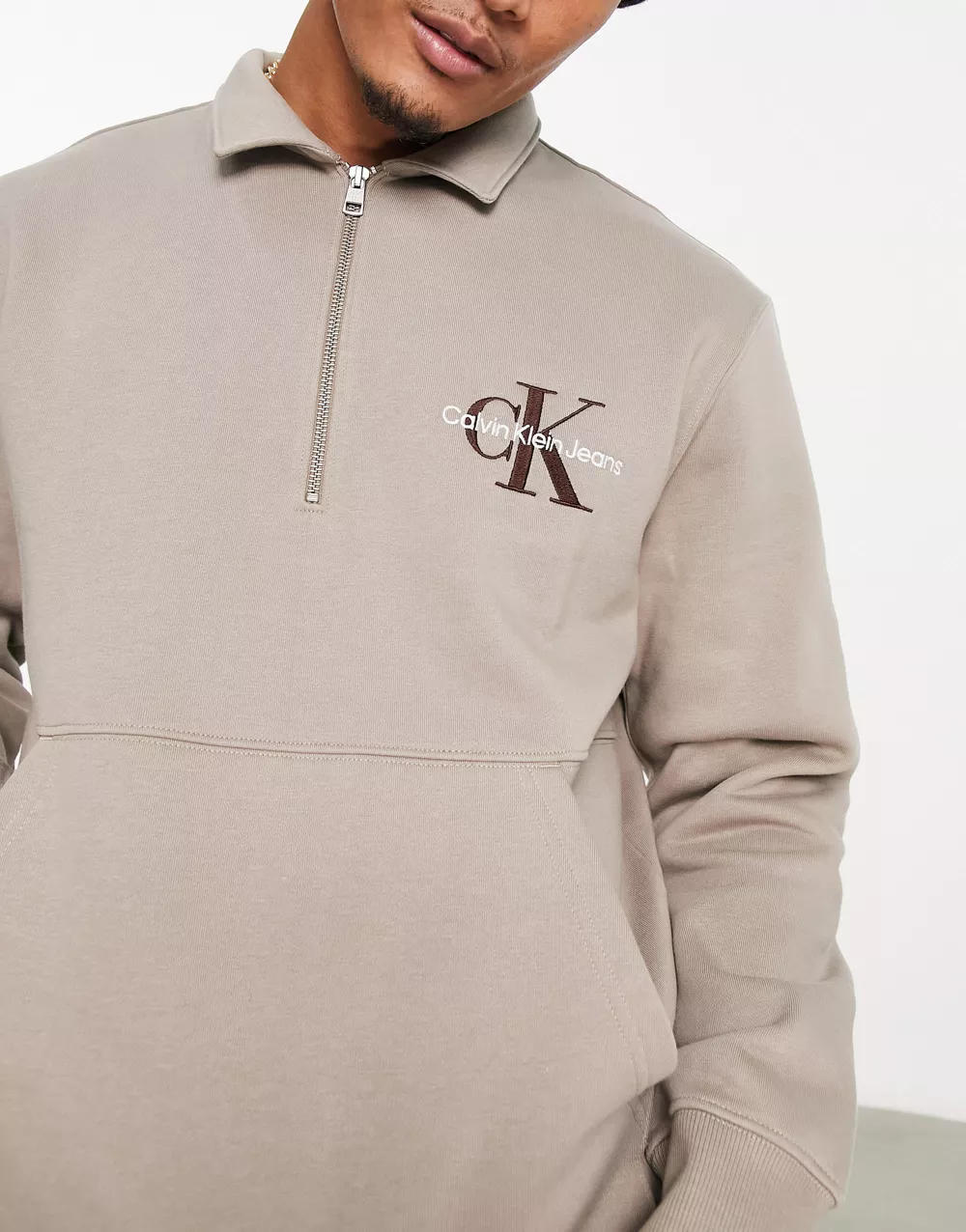 - Calvin Klein Jeans monologo quarter zip rugby sweatshirt in taupe