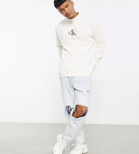 - Calvin Klein Jeans monologo relaxed fit high neck knit jumper in ivory