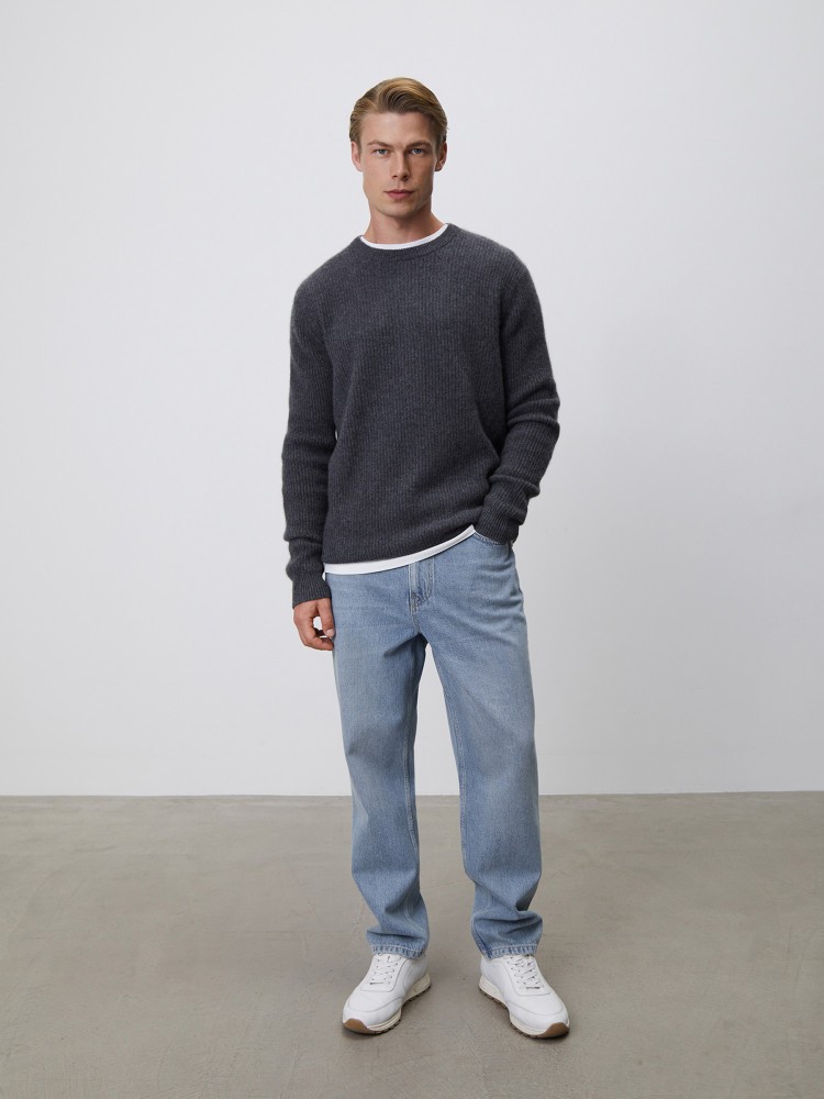 Джемпер из кашемира. Лаконичный джемпер, который подходит к любым брюкам, от джоггеров и джинсов до классики — такие модели никогда не устаревают. Связан из 100% кашемира — нежной и теплой нити, созданной из невесомого пуха кашмирских коз. Природная пушистость нити может приводить к появлению катышков — избегайте трения о шершавые поверхности и время от времени удаляйте комочки пуха машинкой по уходу за шерстью.