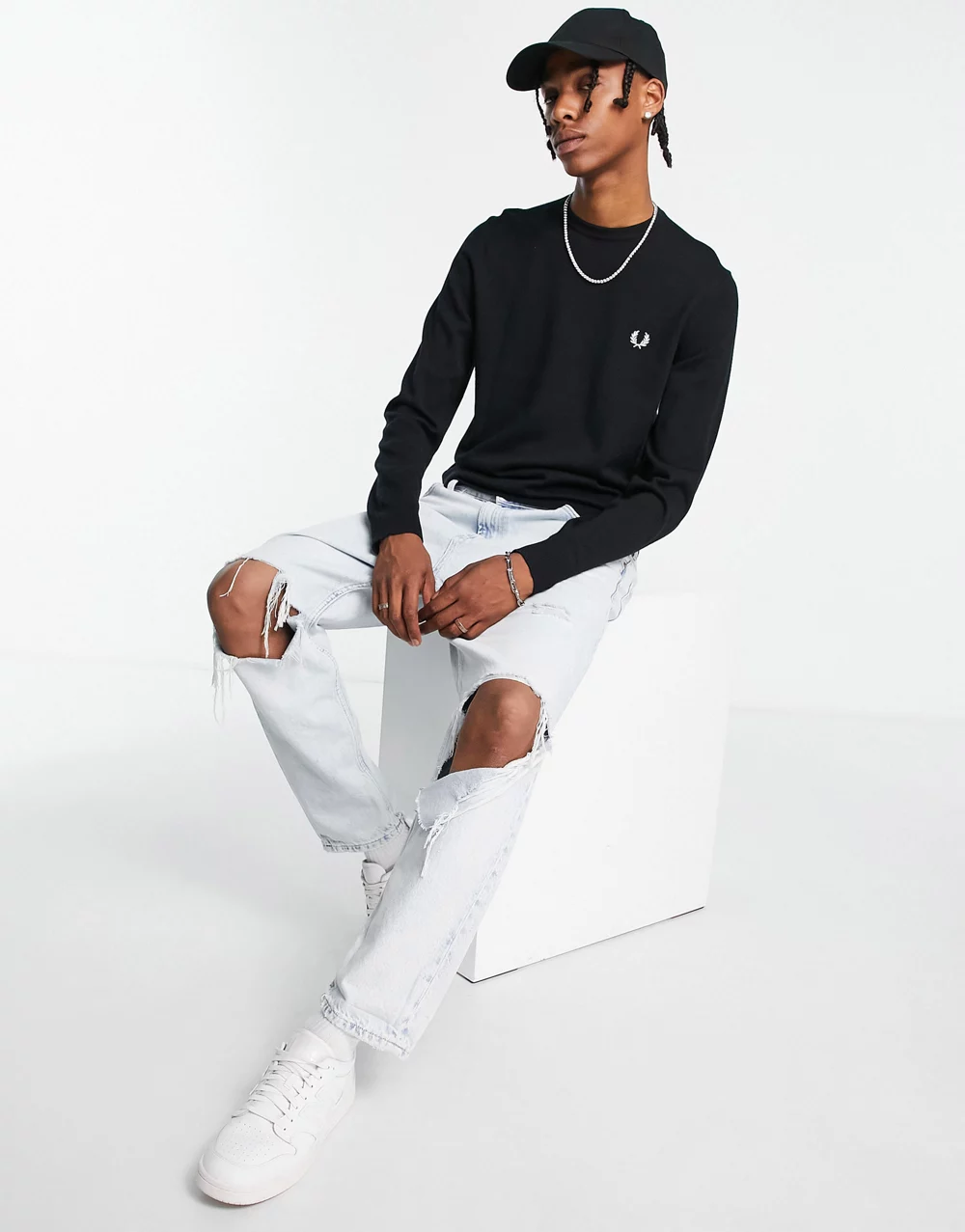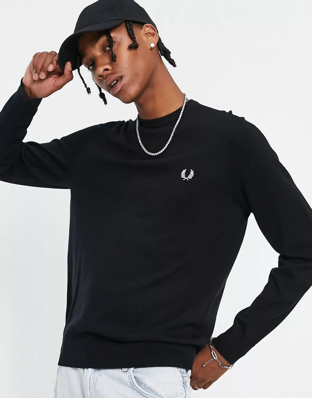 HUGO Sopid retro logo jumper in black and off white
