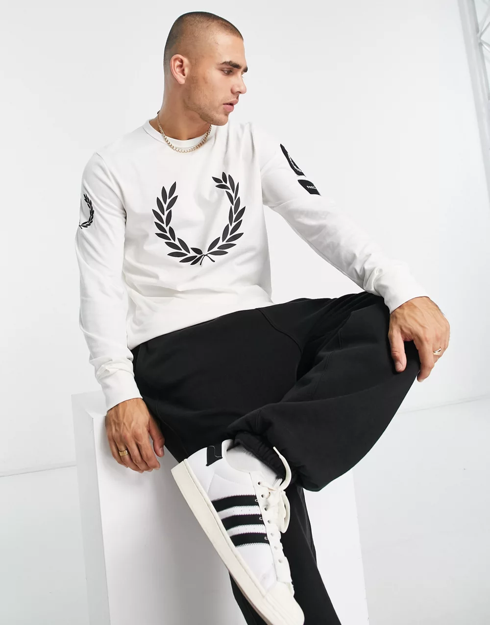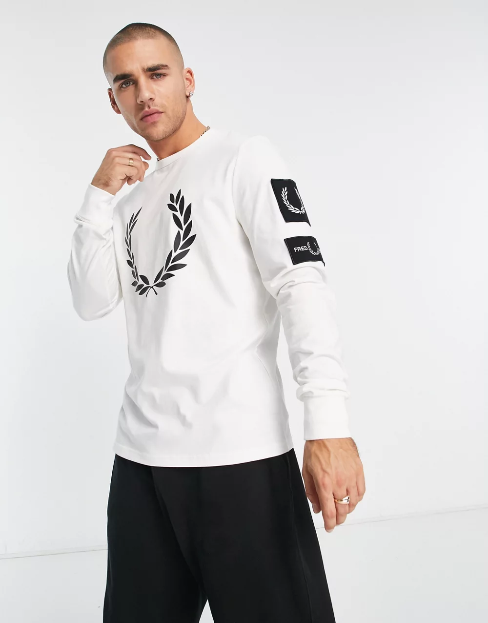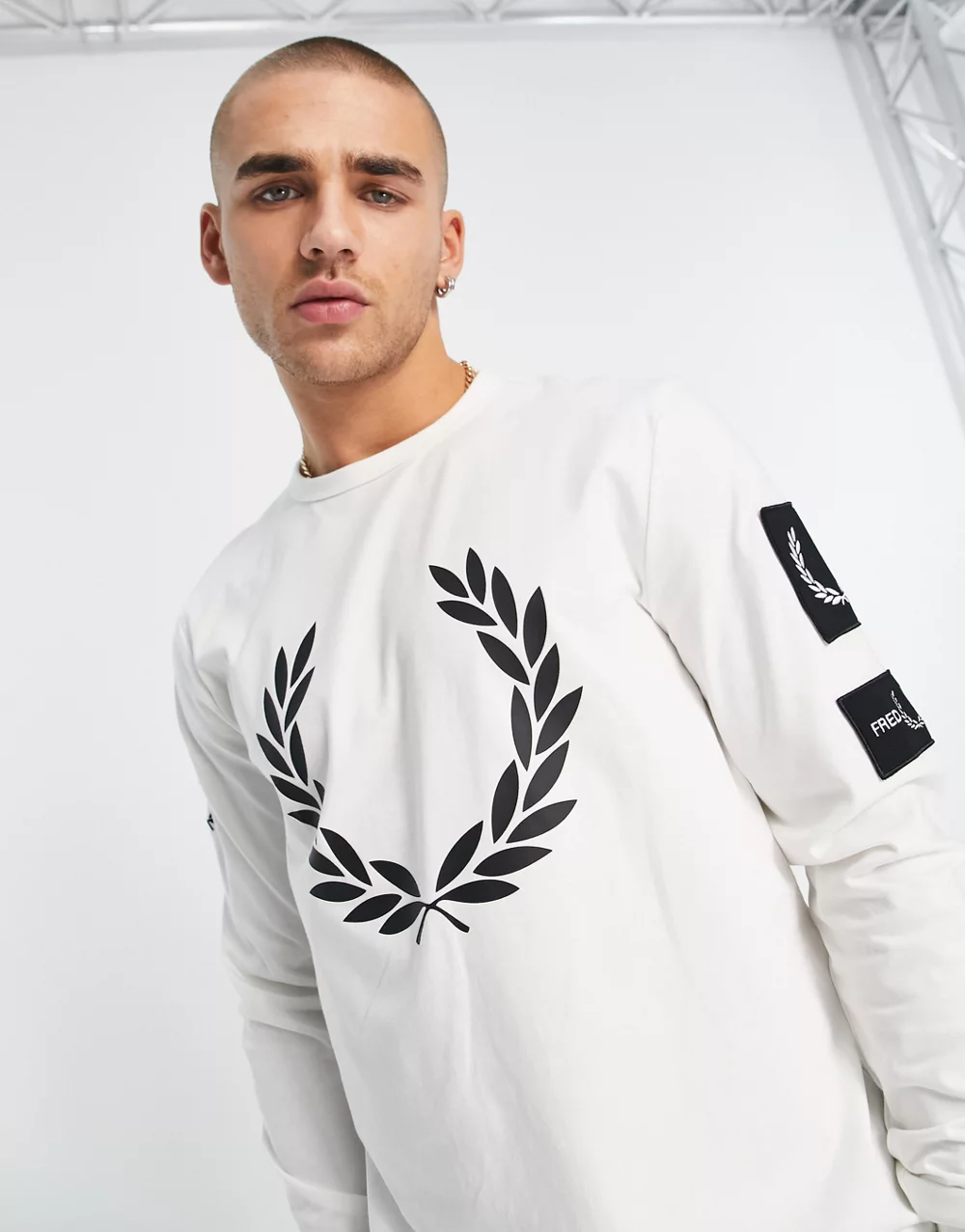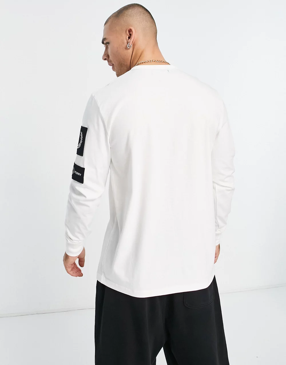 - Fred Perry laurel wreath and badge long sleeve top in white