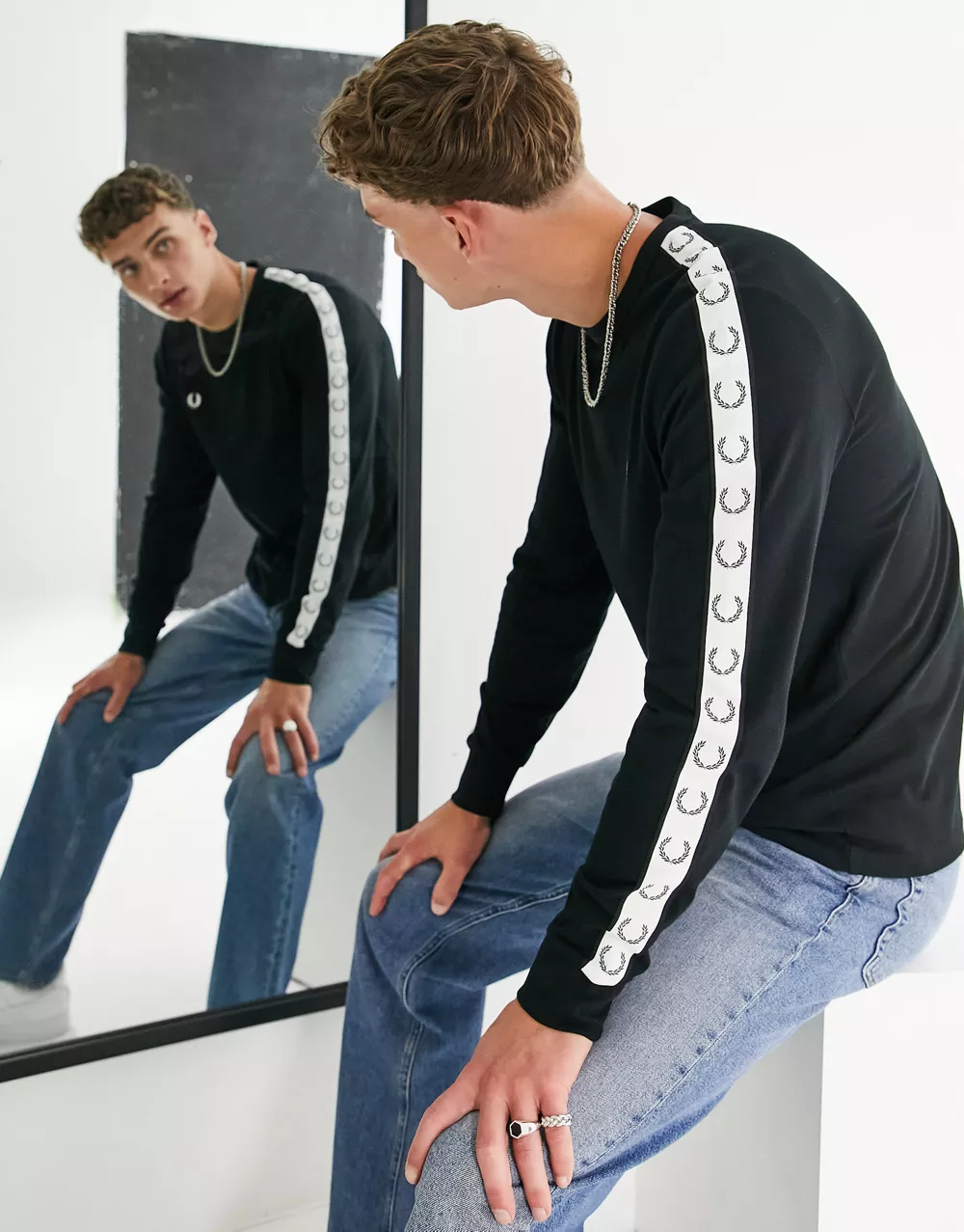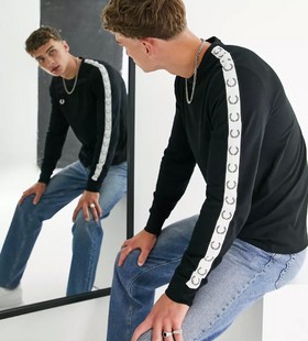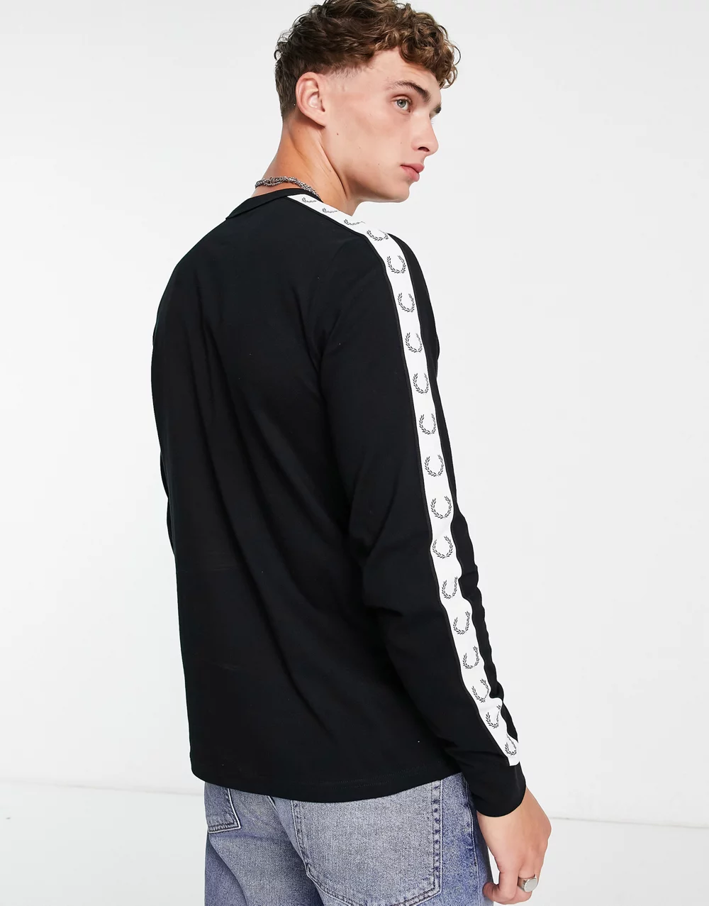 - Fred Perry taped long sleeve top in black
