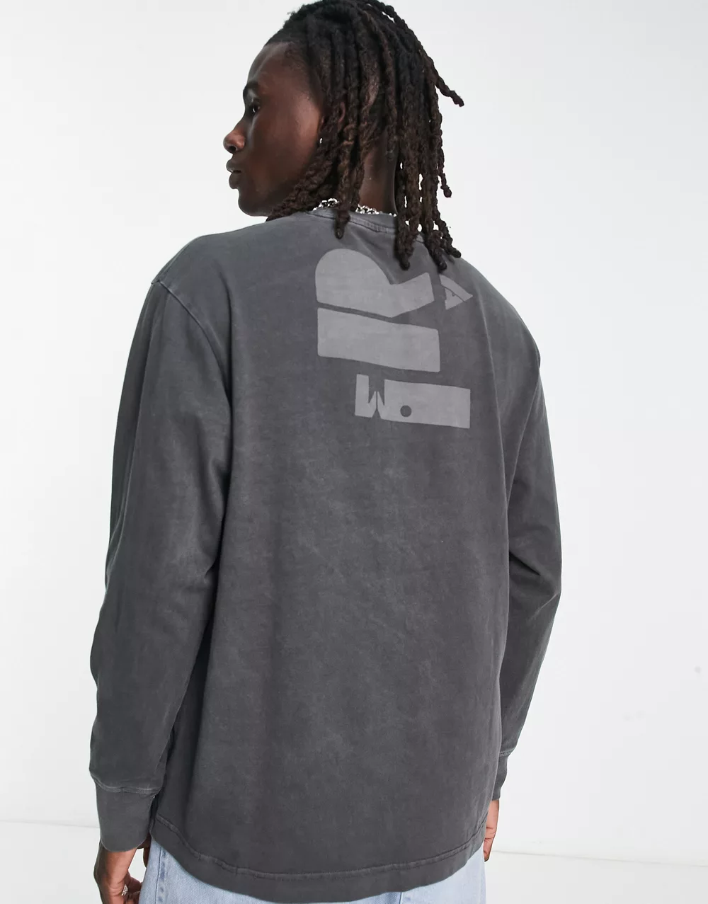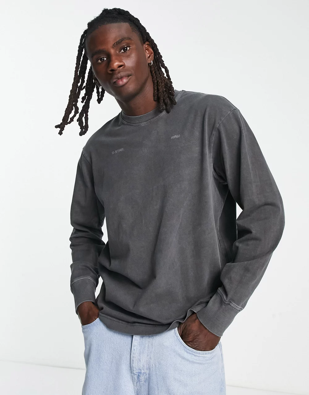 - G-Star back typography boxy oversized long sleeve top in washed black
