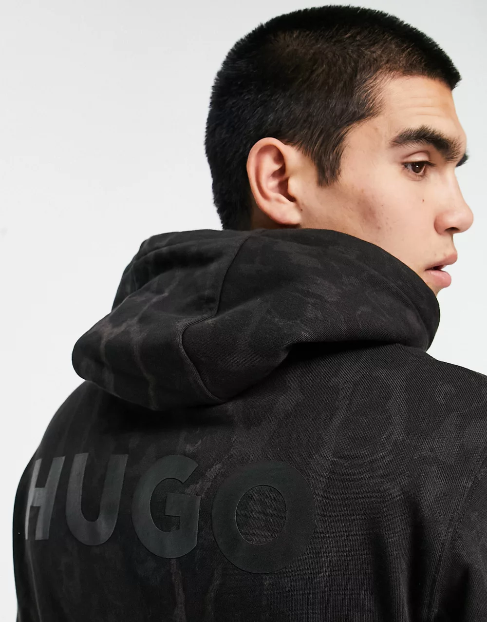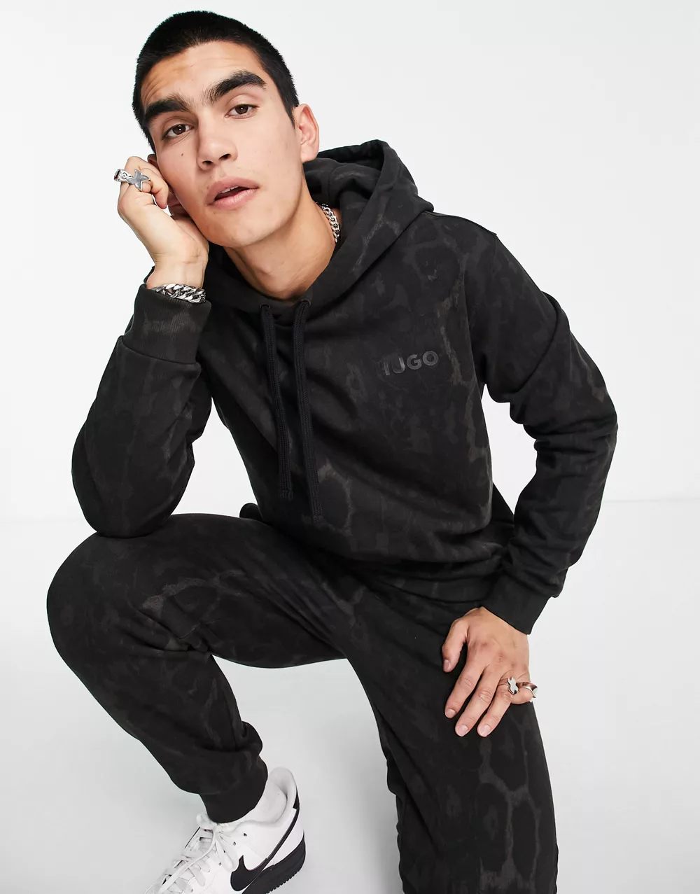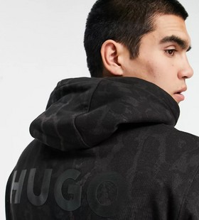 - HUGO Daglion relaxed fit hoodie in black with all over animal print with back logo
