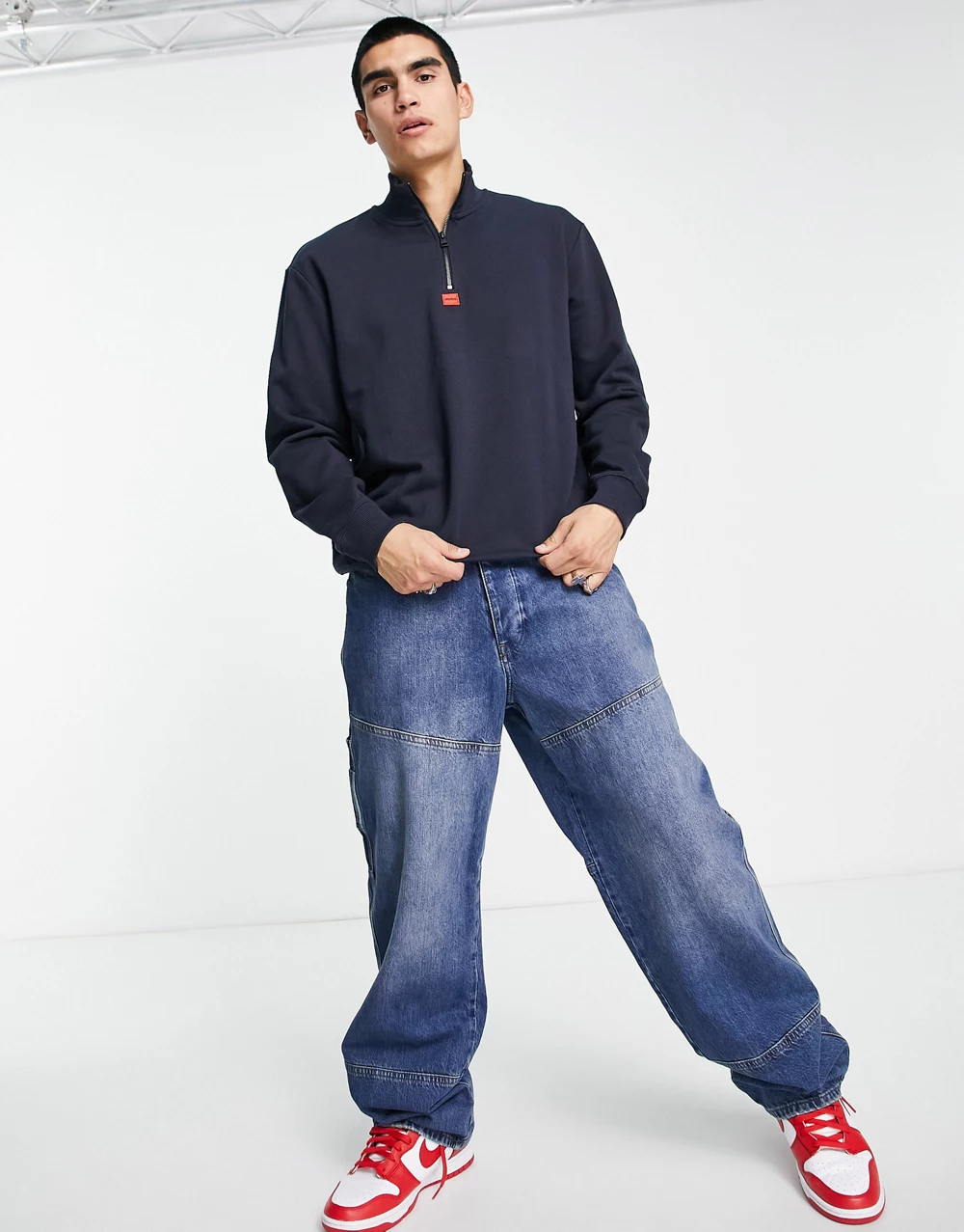 - HUGO Durty relaxed fit 1/4 zip sweatshirt in navy