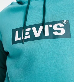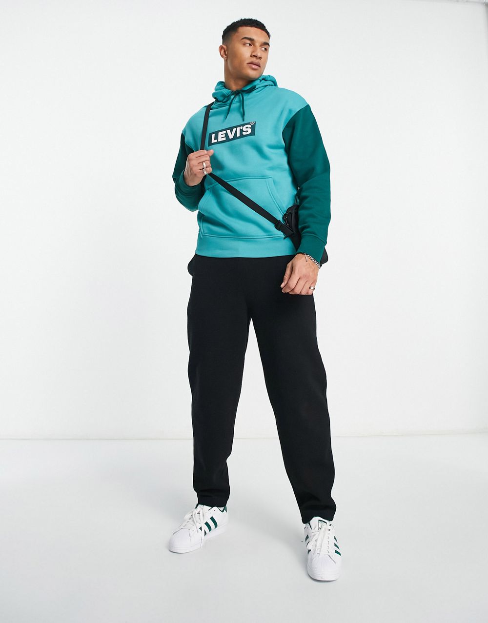 - Levi's hoodie in green with central box tab logo and contrasting sleeves