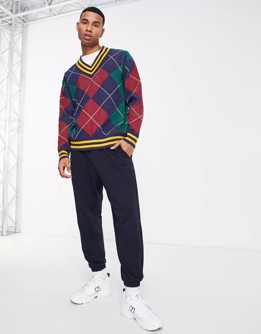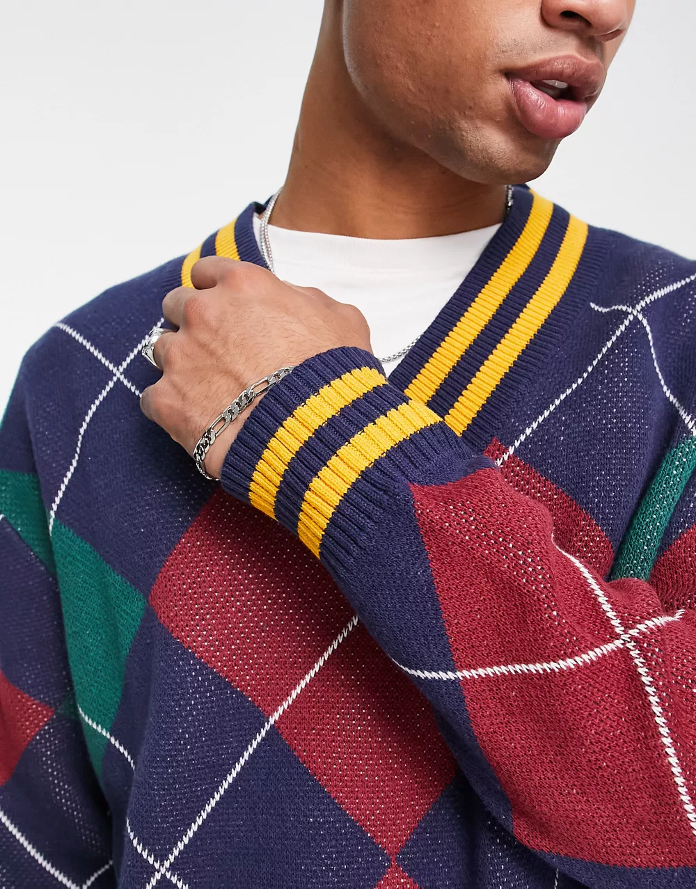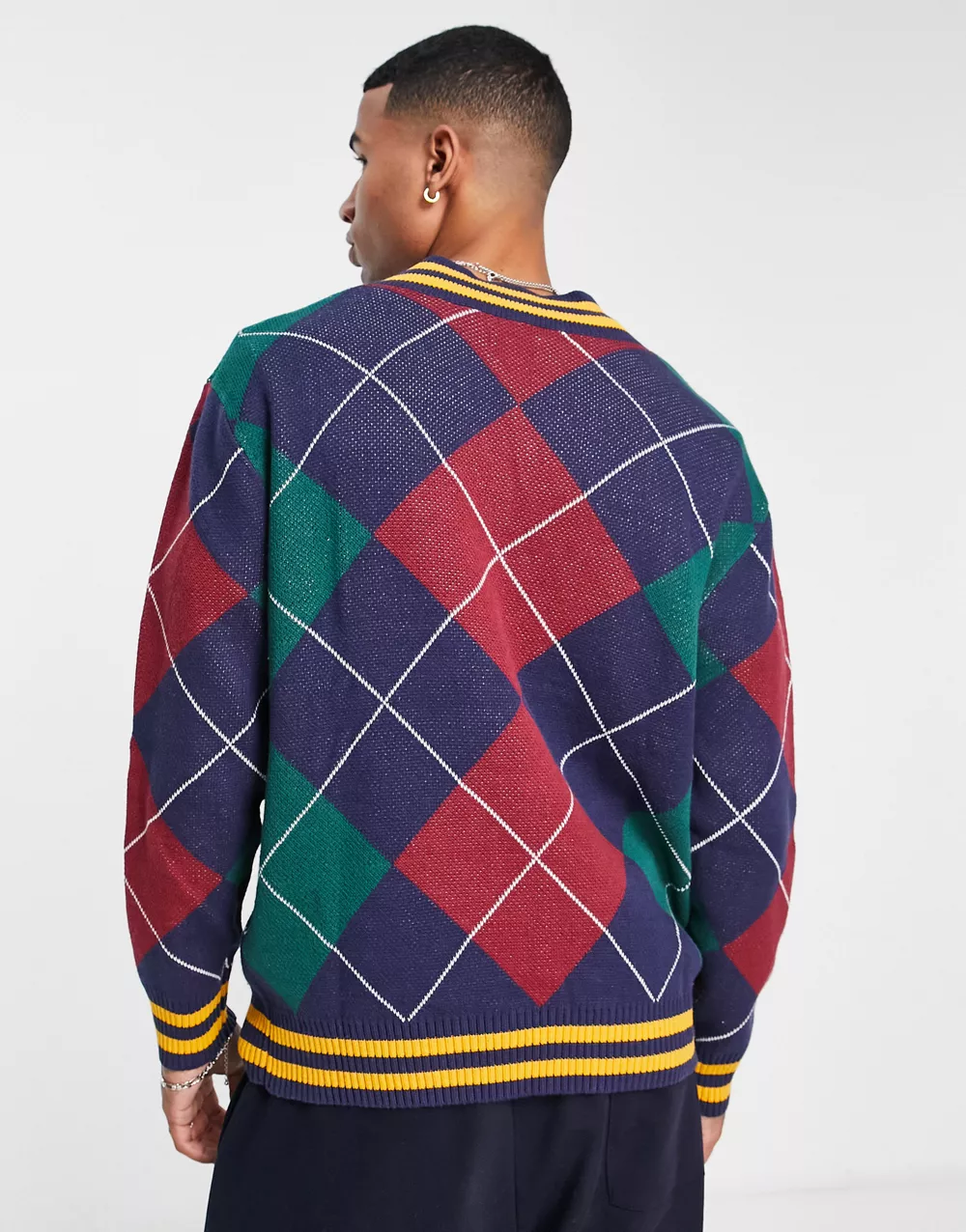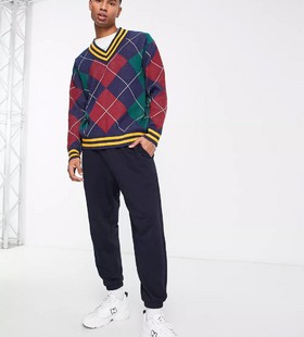 - Levi's knitted v neck jumper in diamond print with logo