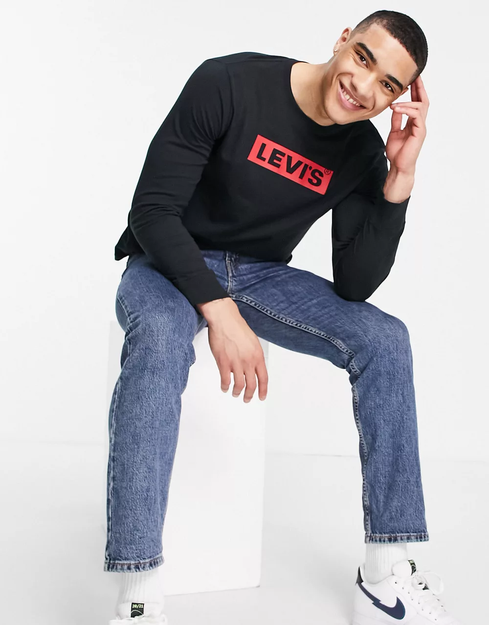 - Levi's large boxtab logo relaxed fit long sleeve top in black