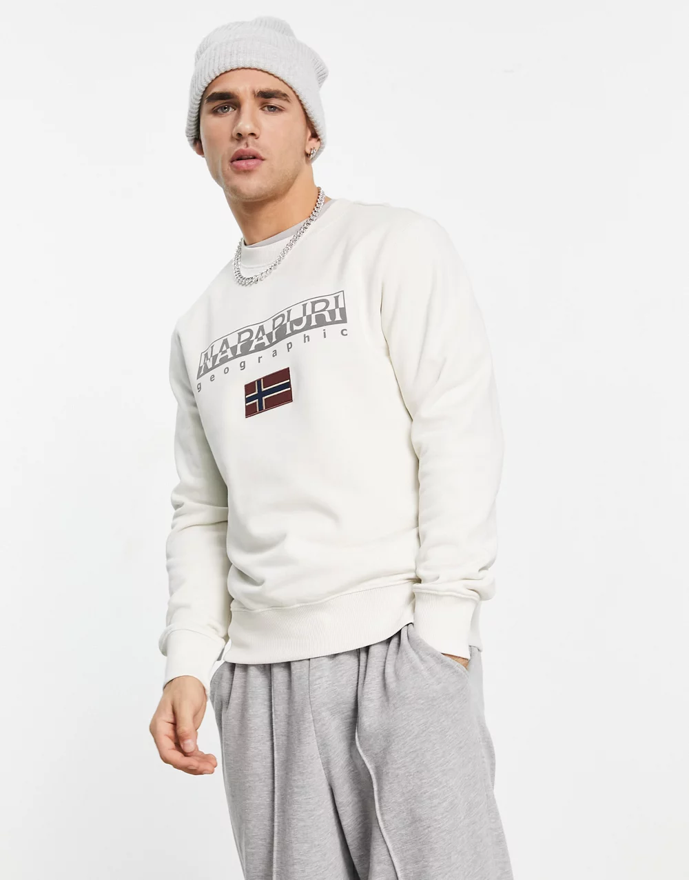 - Napapijri Ayas chest logo fleece sweatshirt in white