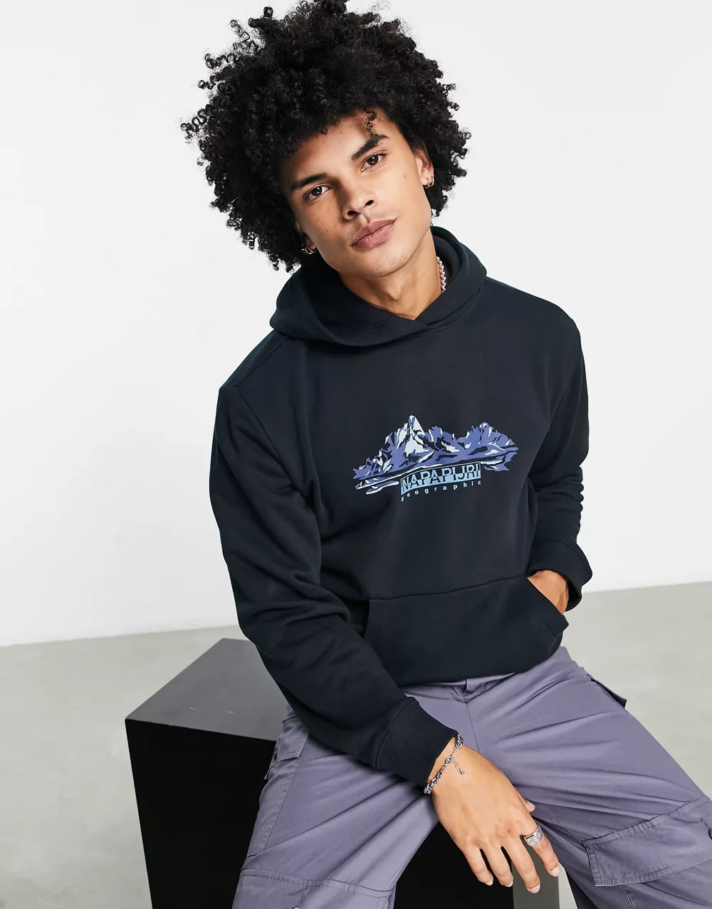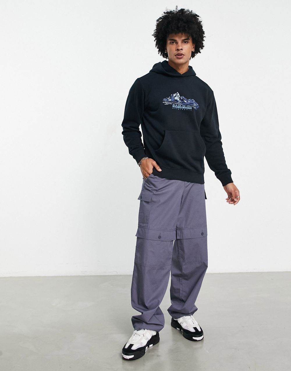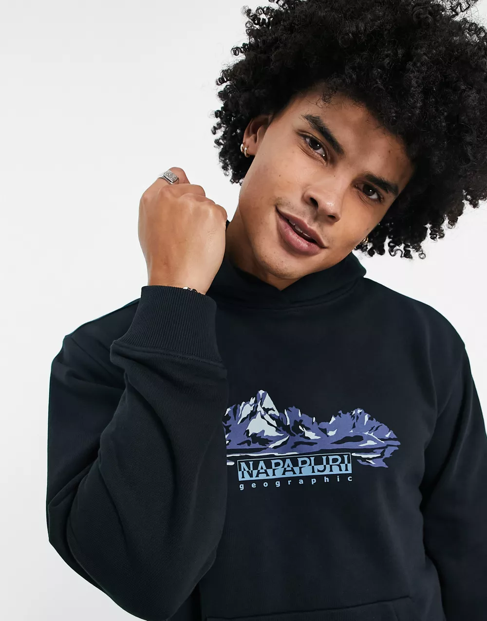 - Napapijri b-back country mountain print hoodie in black