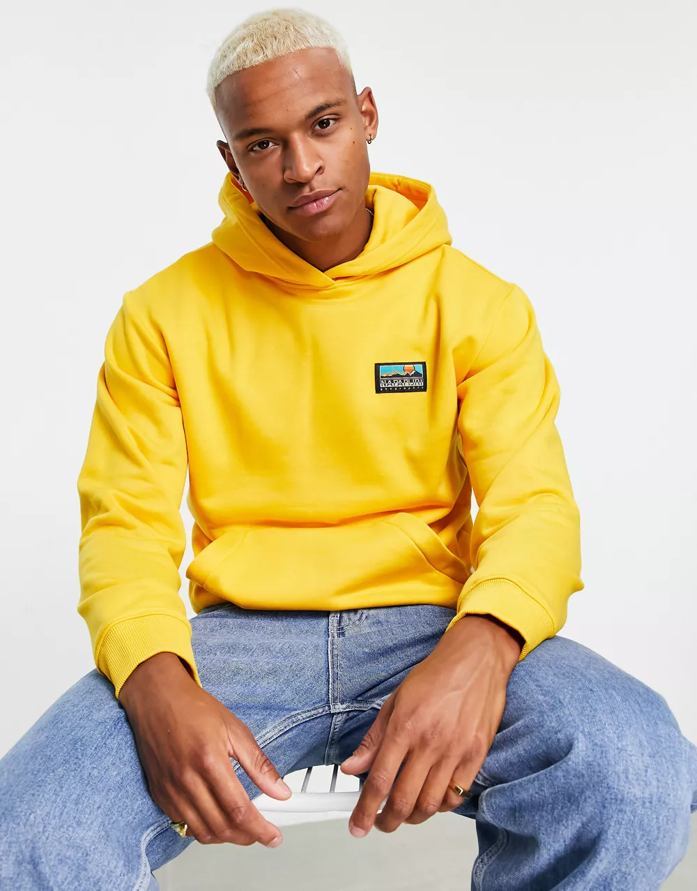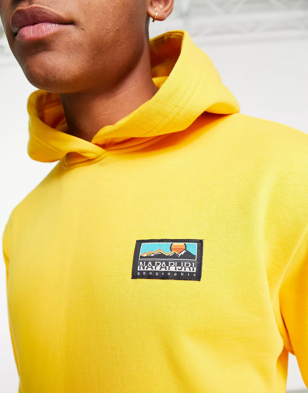 - Napapijri b-freestyle mountain back print hoodie in yellow