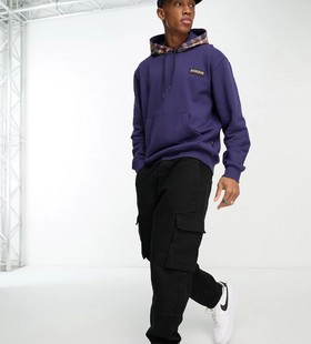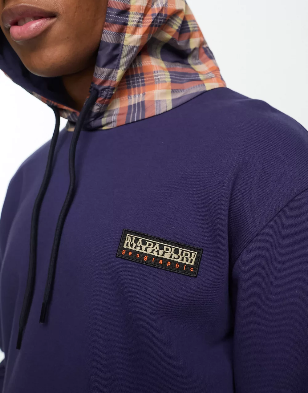 - Napapijri x Liberty Candolle fleece hoodie with checked hood in navy