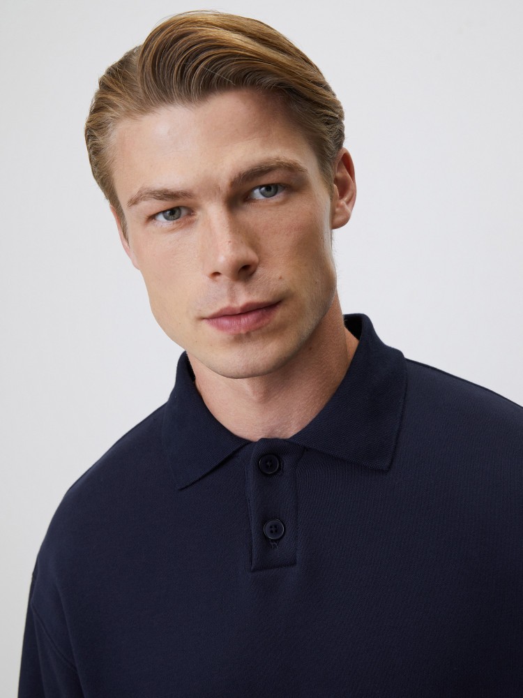 Поло с длинным рукавом — универсальная модель и не требует размышлений у шкафа. Для модели выбрали плотный трехниточный футер без начеса высшего качества: ткань создана из длинноволокнистого австралийского хлопка, который вычесали специальным гребнем, чтобы оставить самые прочные и гладкие волокна.