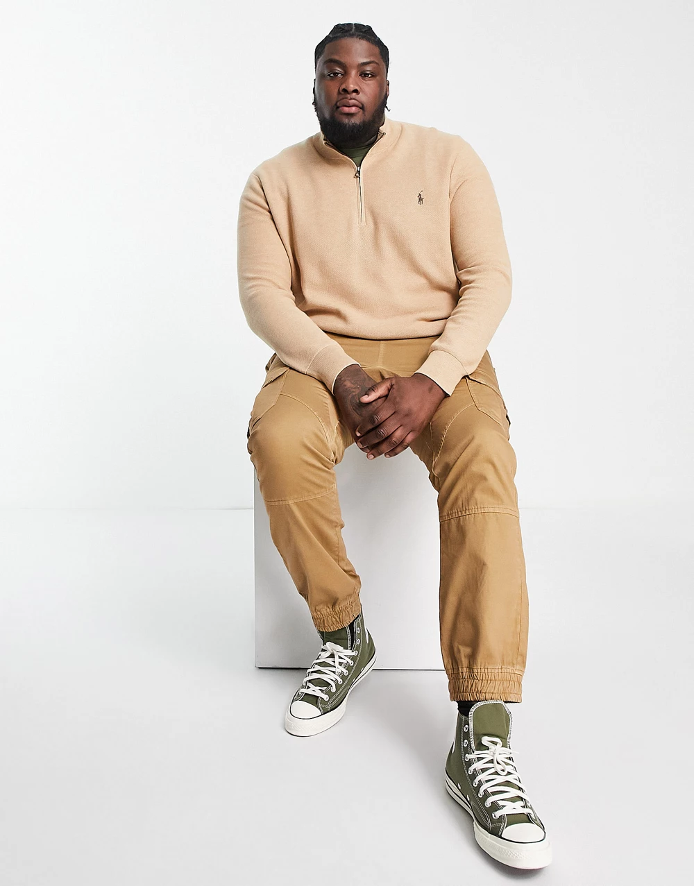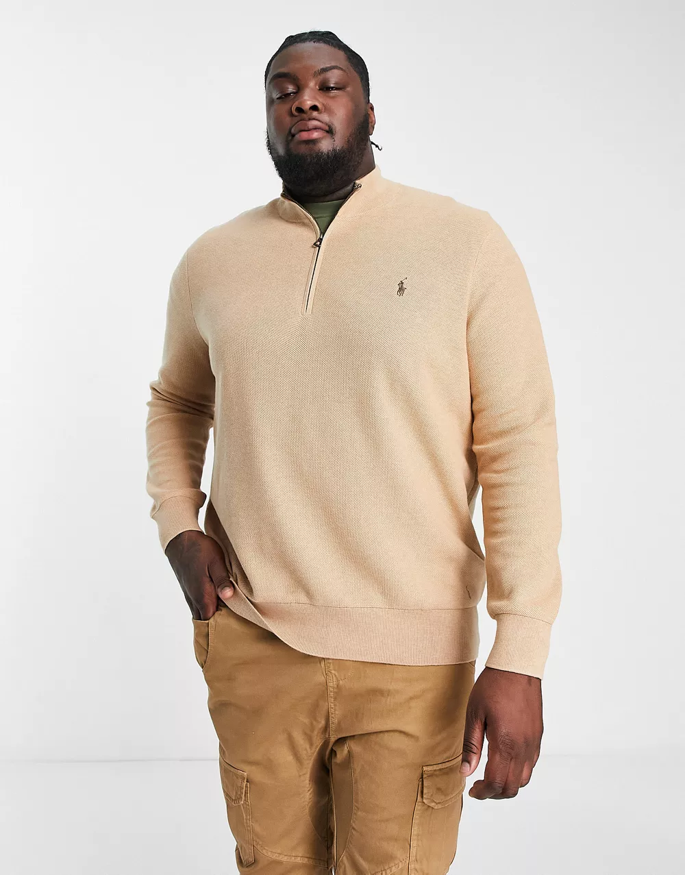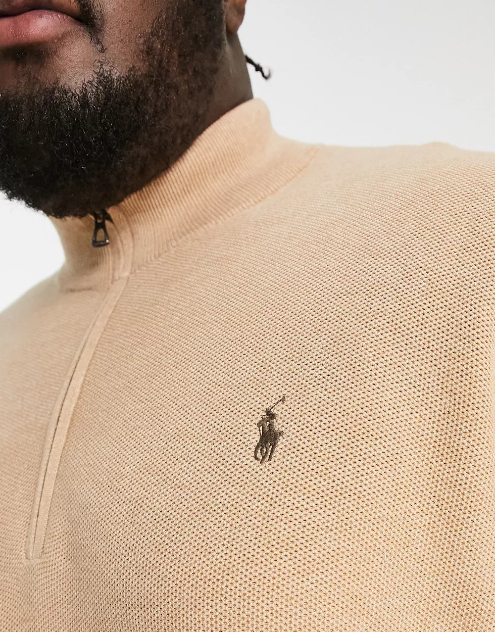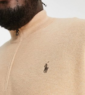 - Polo Ralph Lauren Big & Tall icon logo heavyweight cotton knit half zip jumper in camel marl