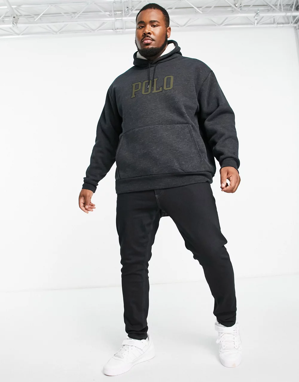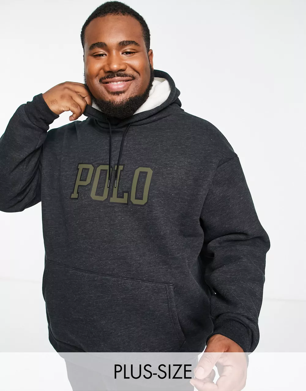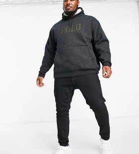 - Polo Ralph Lauren Big & Tall large logo borg hoodie in black marl