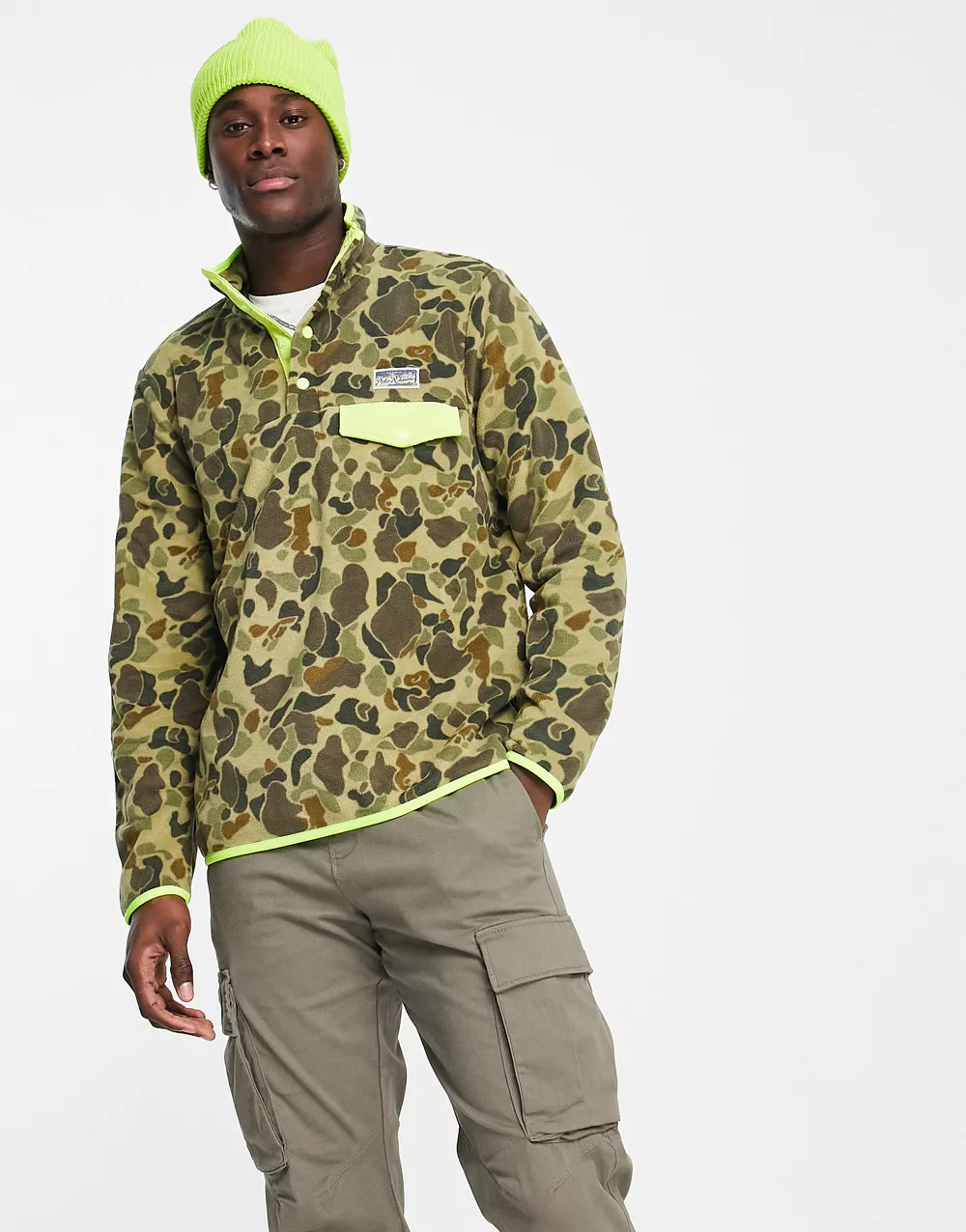 - Polo Ralph Lauren borg contrast pocket camo print half zip sweatshirt in dark green