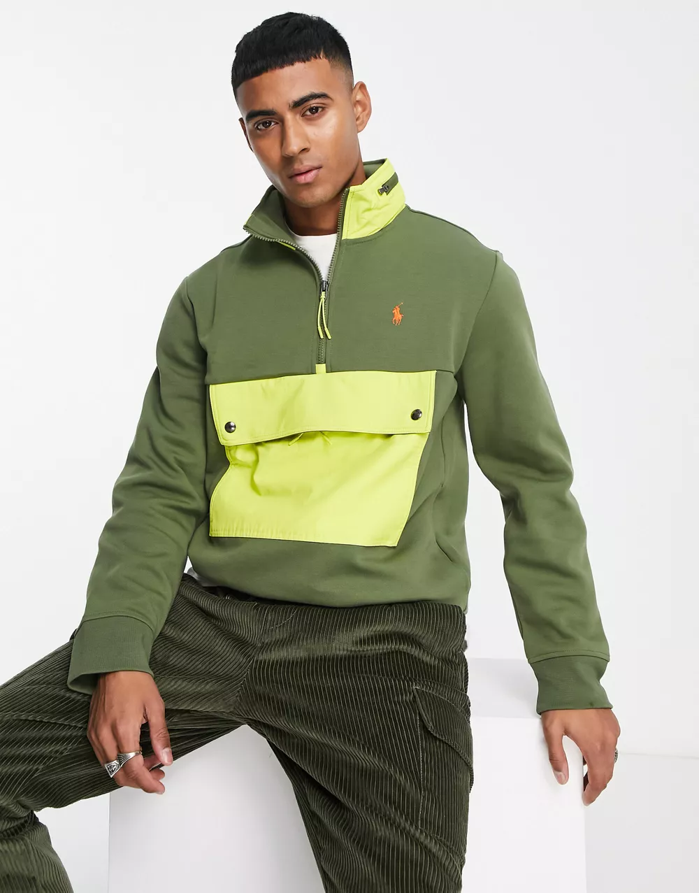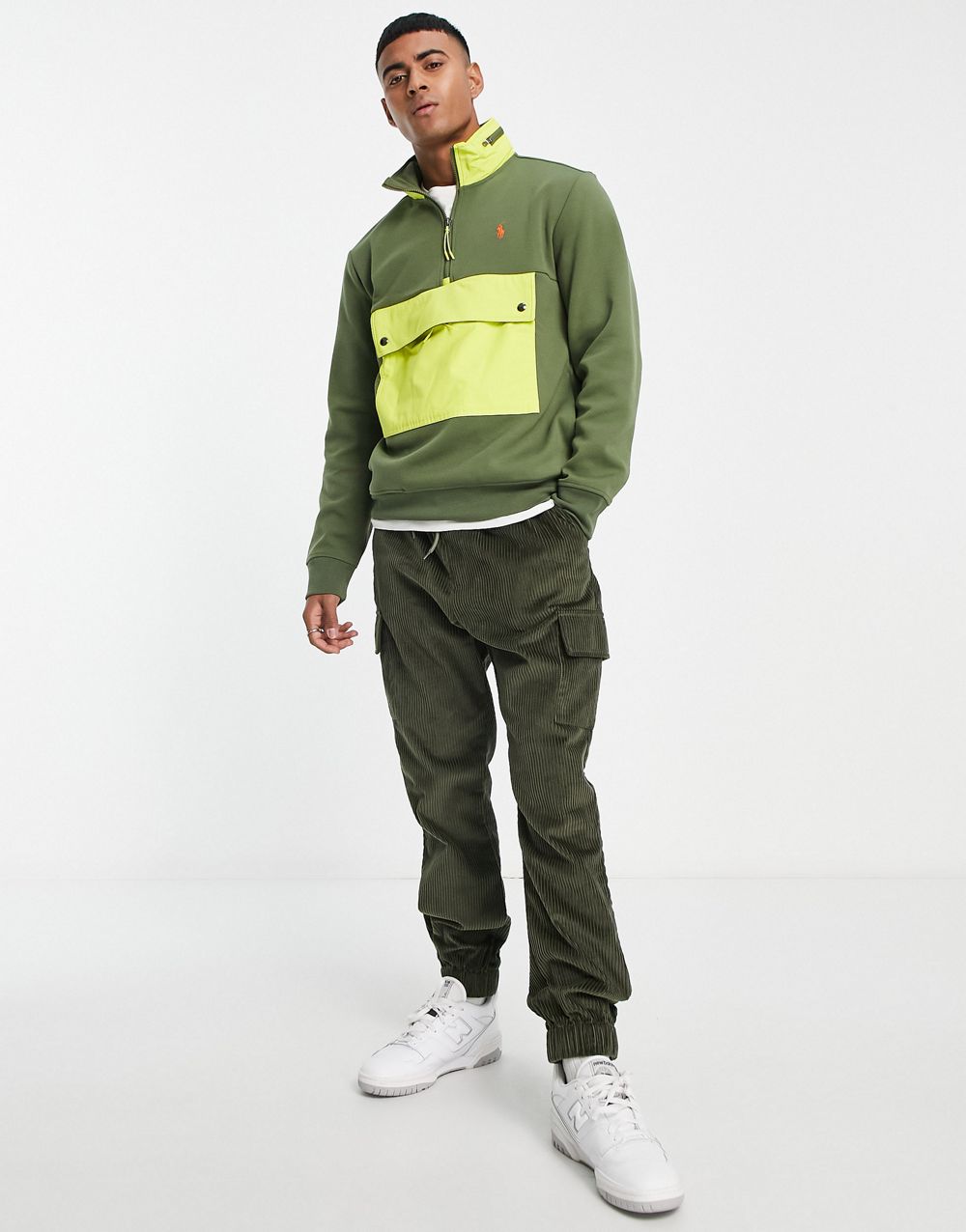 - Polo Ralph Lauren icon logo contrast pocket & neck half zip sweatshirt in dark green