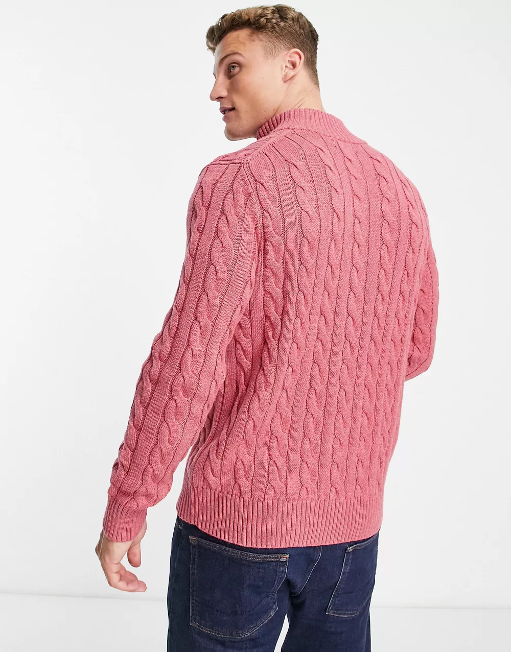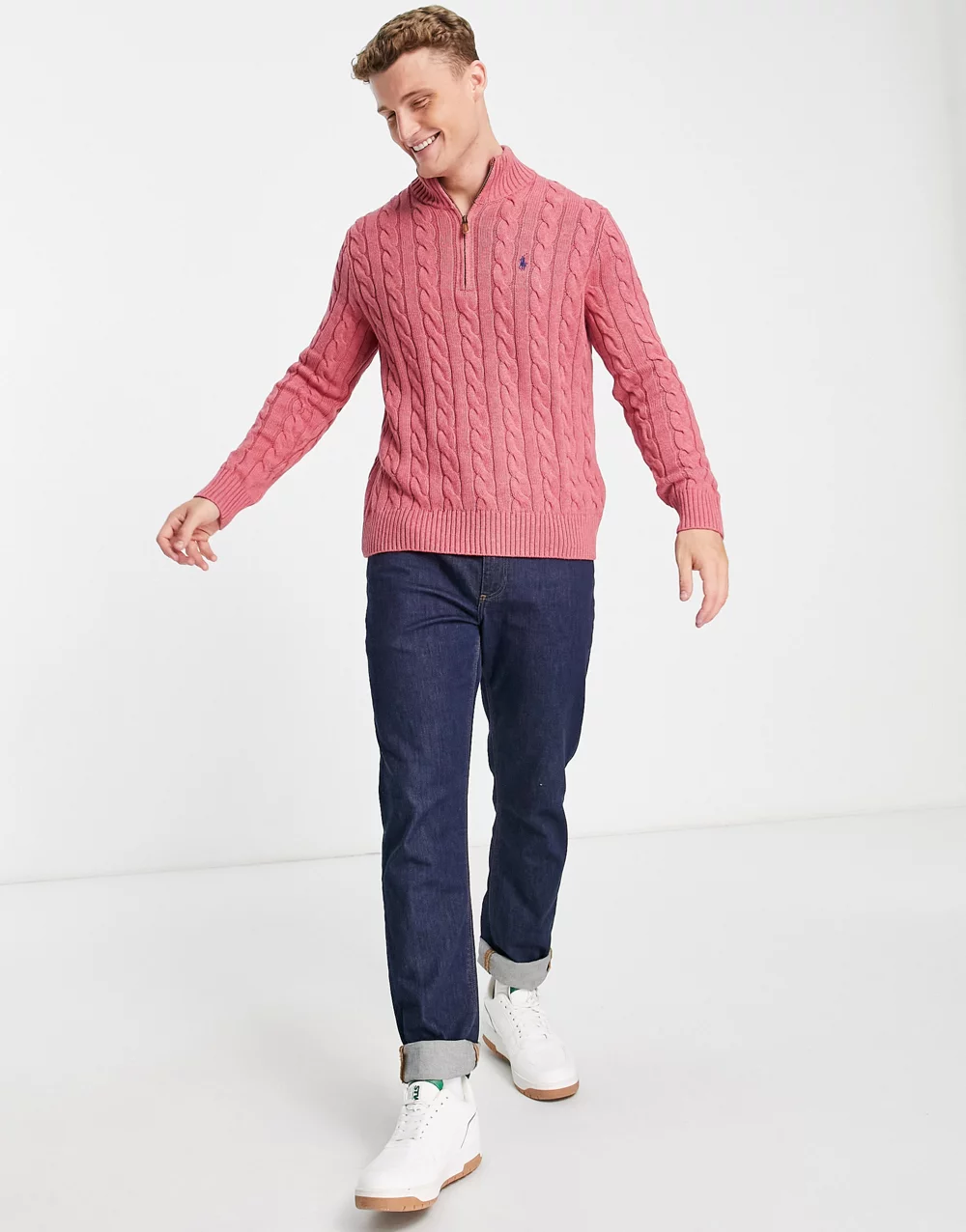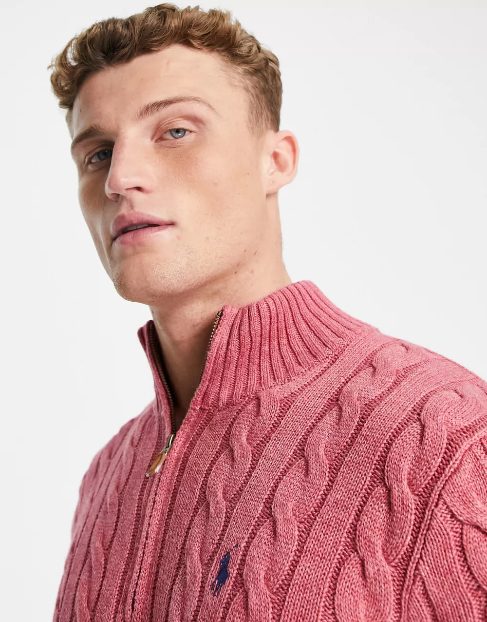 - Polo Ralph Lauren icon logo cotton cable knit jumper in pink marl