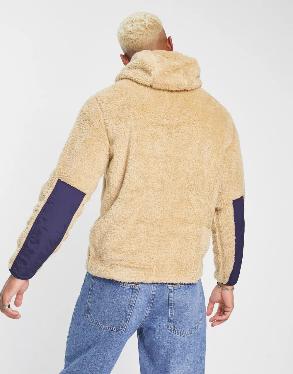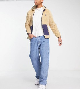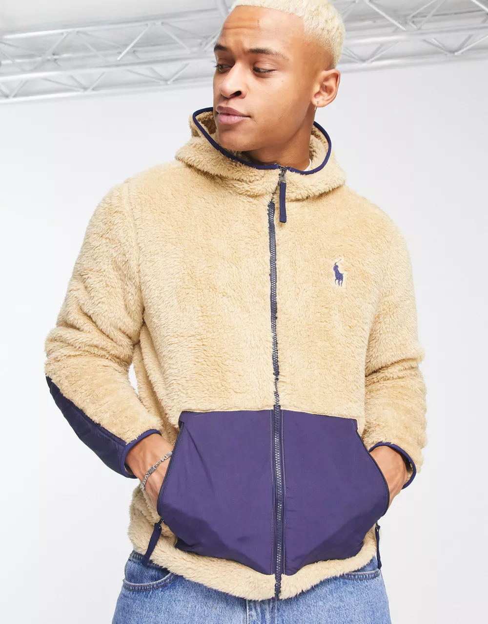 - Polo Ralph Lauren icon logo curly borg colourblock full zip hoodie in sand/navy