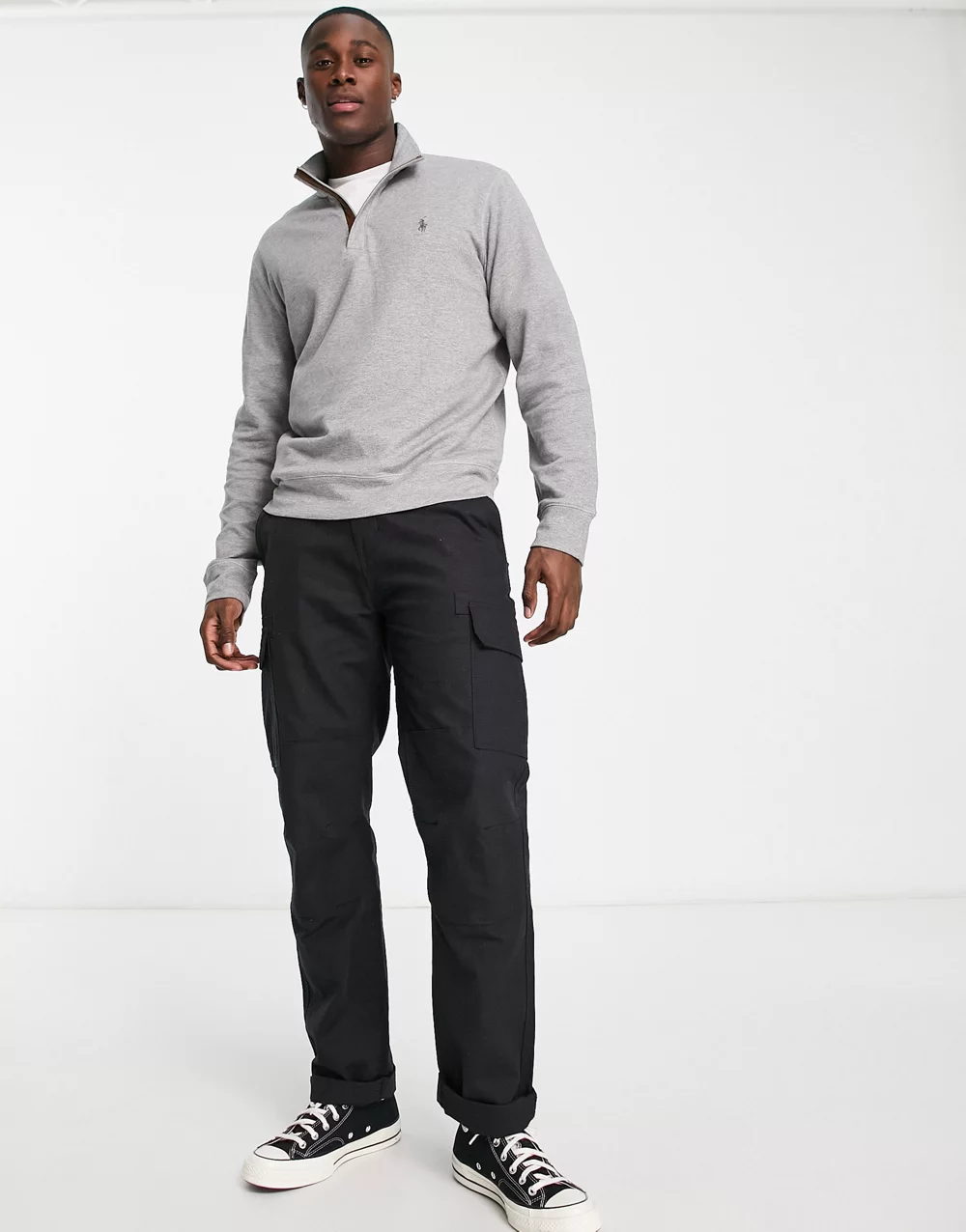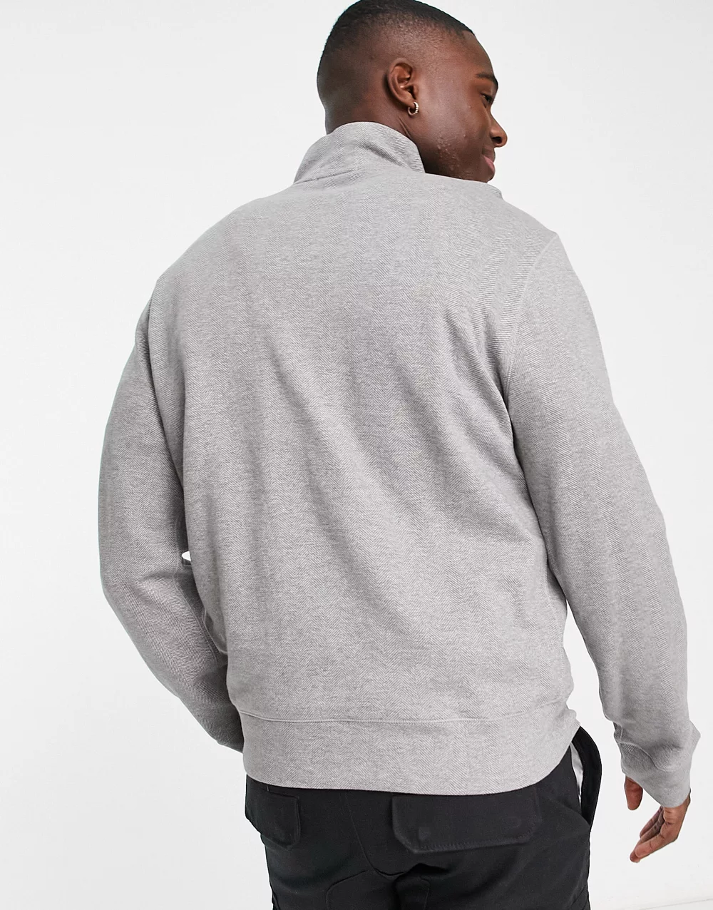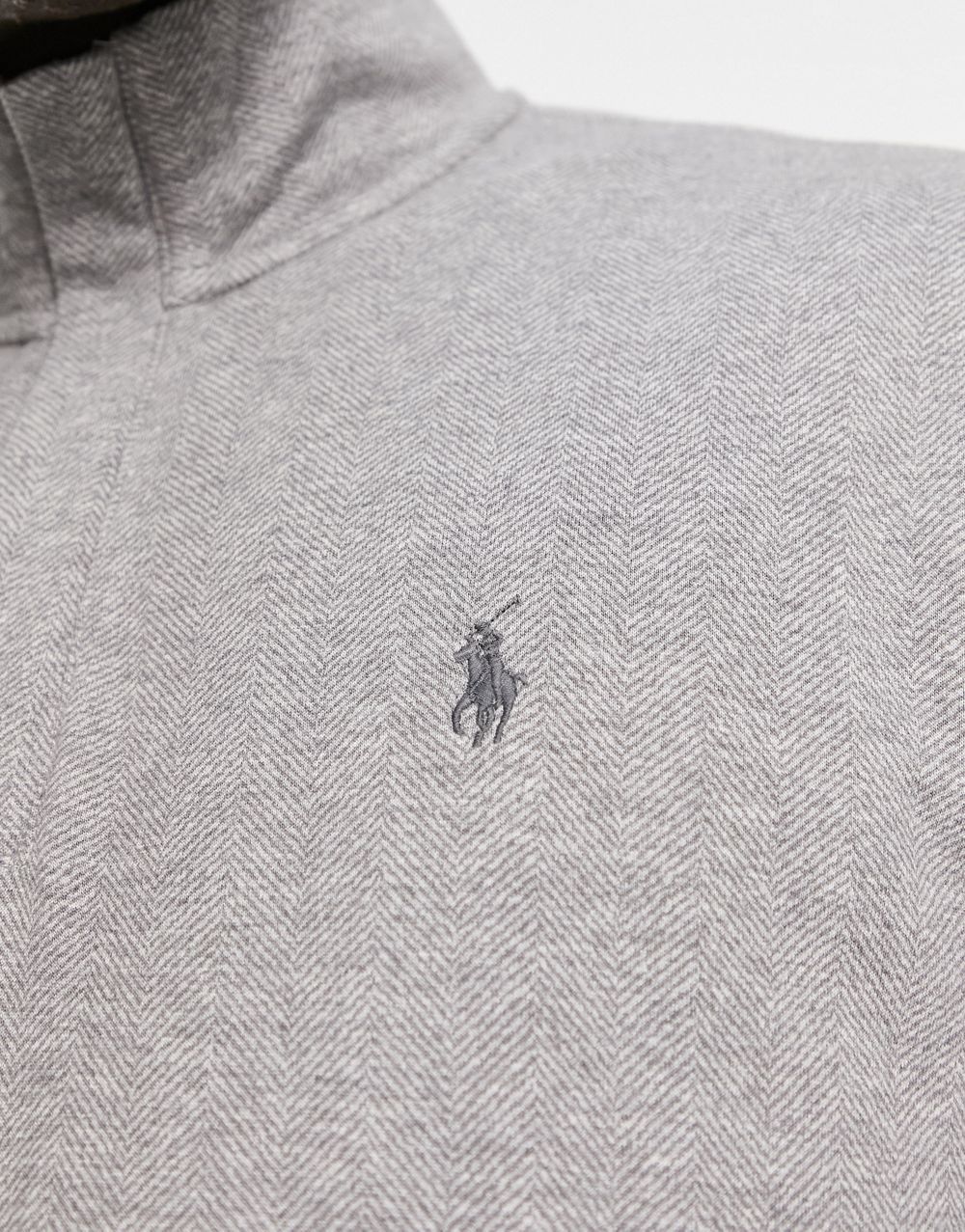 - Polo Ralph Lauren icon logo double knit suedette trim half zip sweatshirt in grey marl