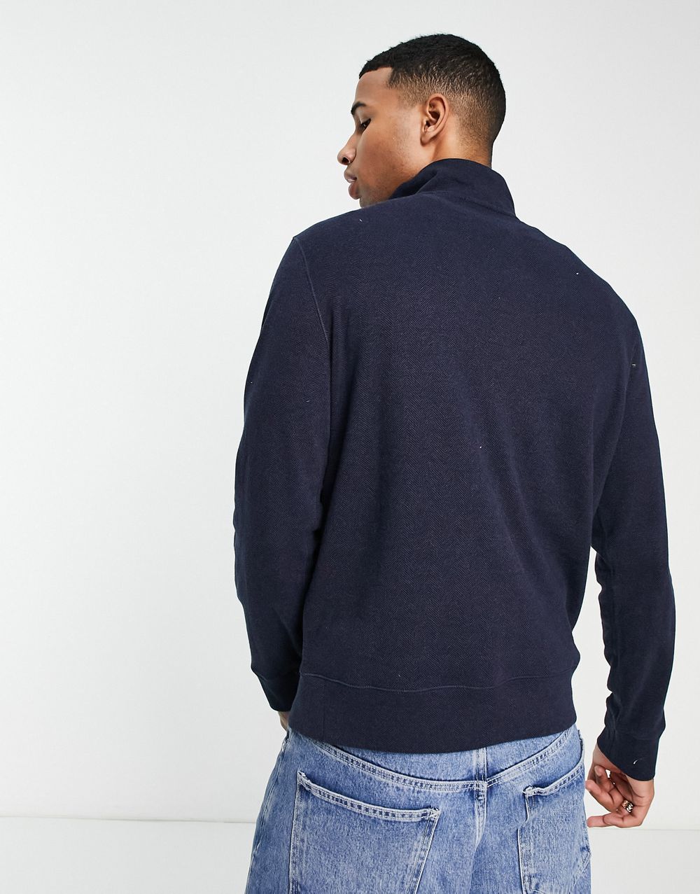 - Polo Ralph Lauren icon logo double knit suedette trim half zip sweatshirt in navy marl
