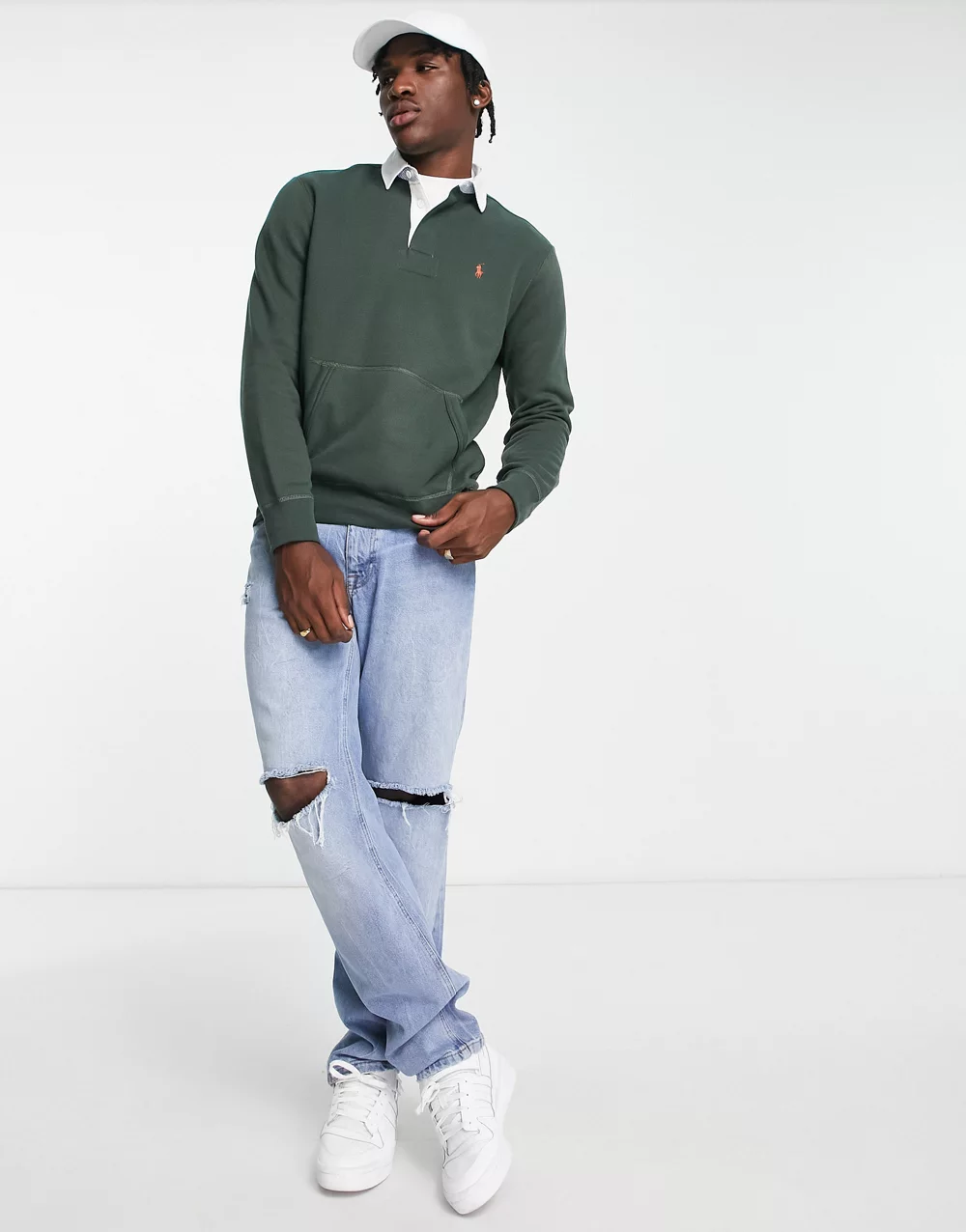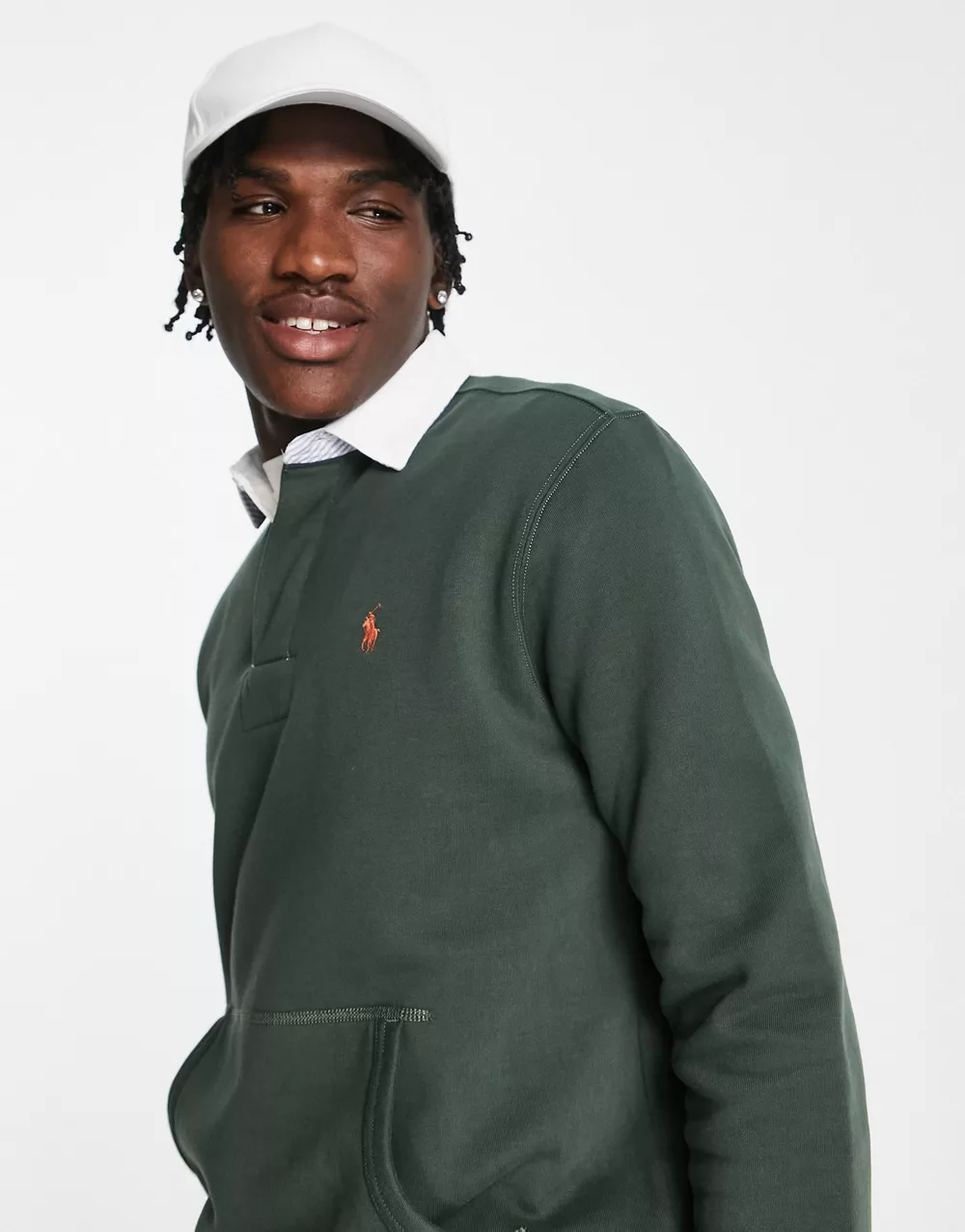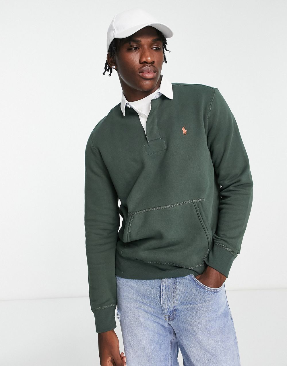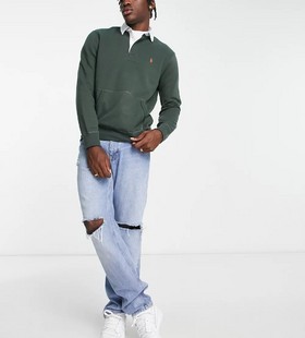 - Polo Ralph Lauren icon logo fleece rugby sweatshirt in dark green