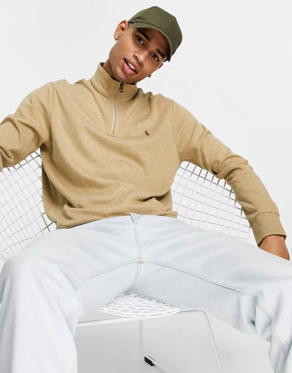- Polo Ralph Lauren icon logo half zip sweatshirt in tan marl