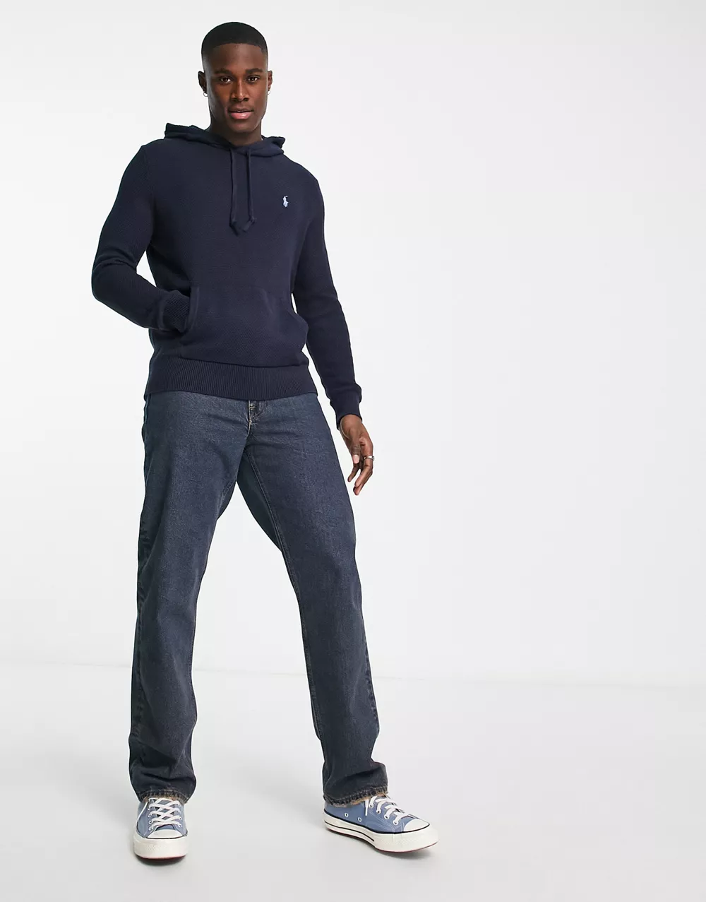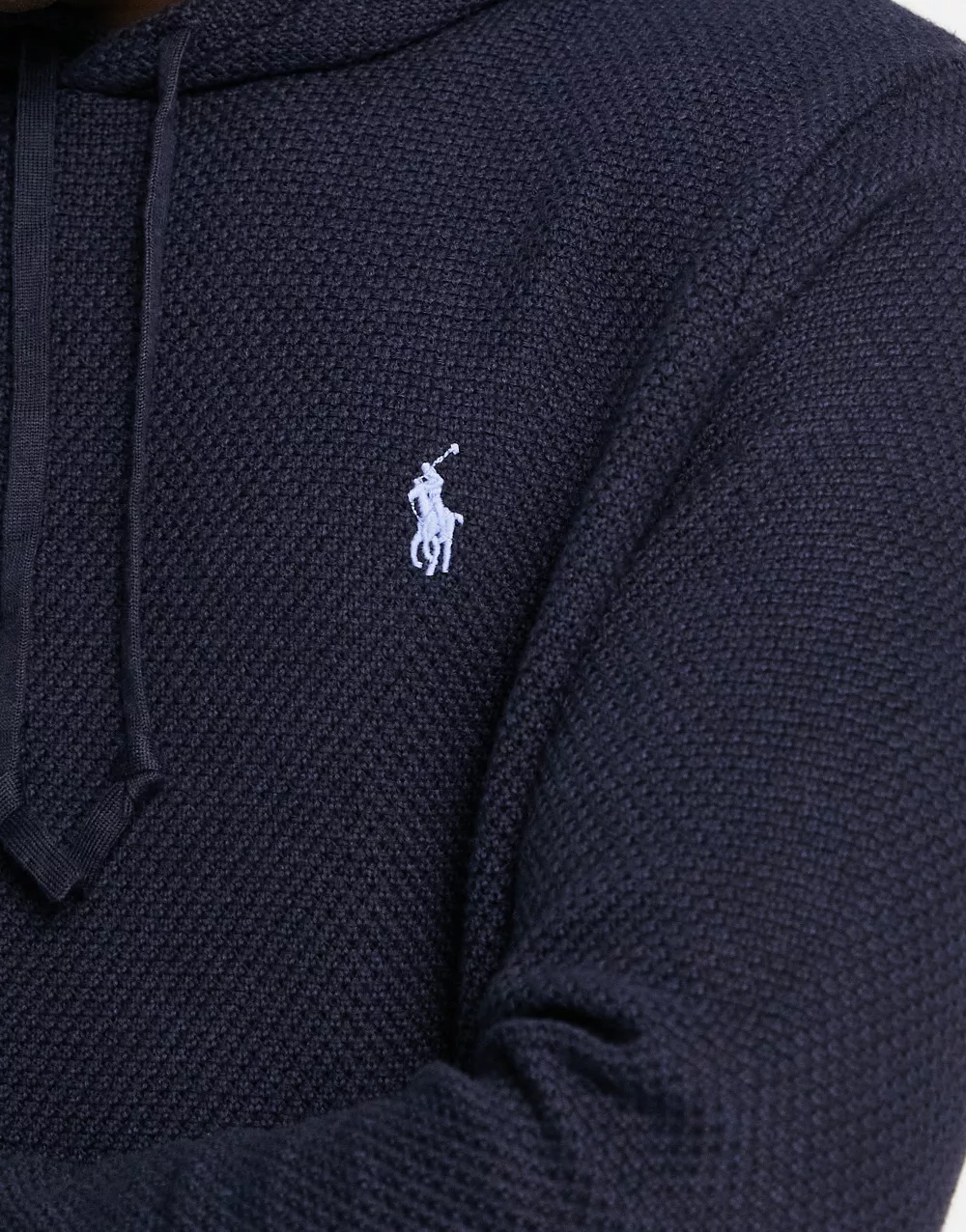 - Polo Ralph Lauren icon logo heavyweight cotton knit hooded jumper in navy marl