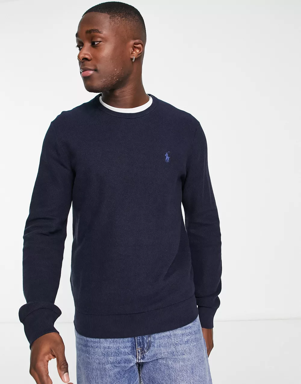 - Polo Ralph Lauren icon logo heavyweight cotton knit jumper in navy marl