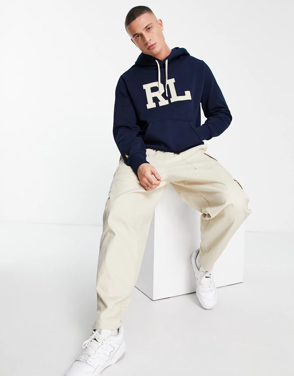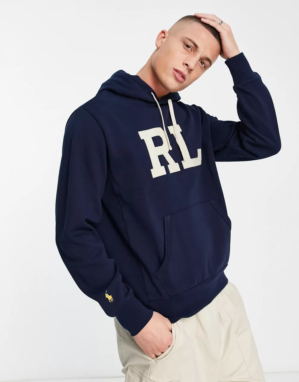 - Polo Ralph Lauren large initial fleece hoodie in navy