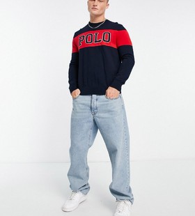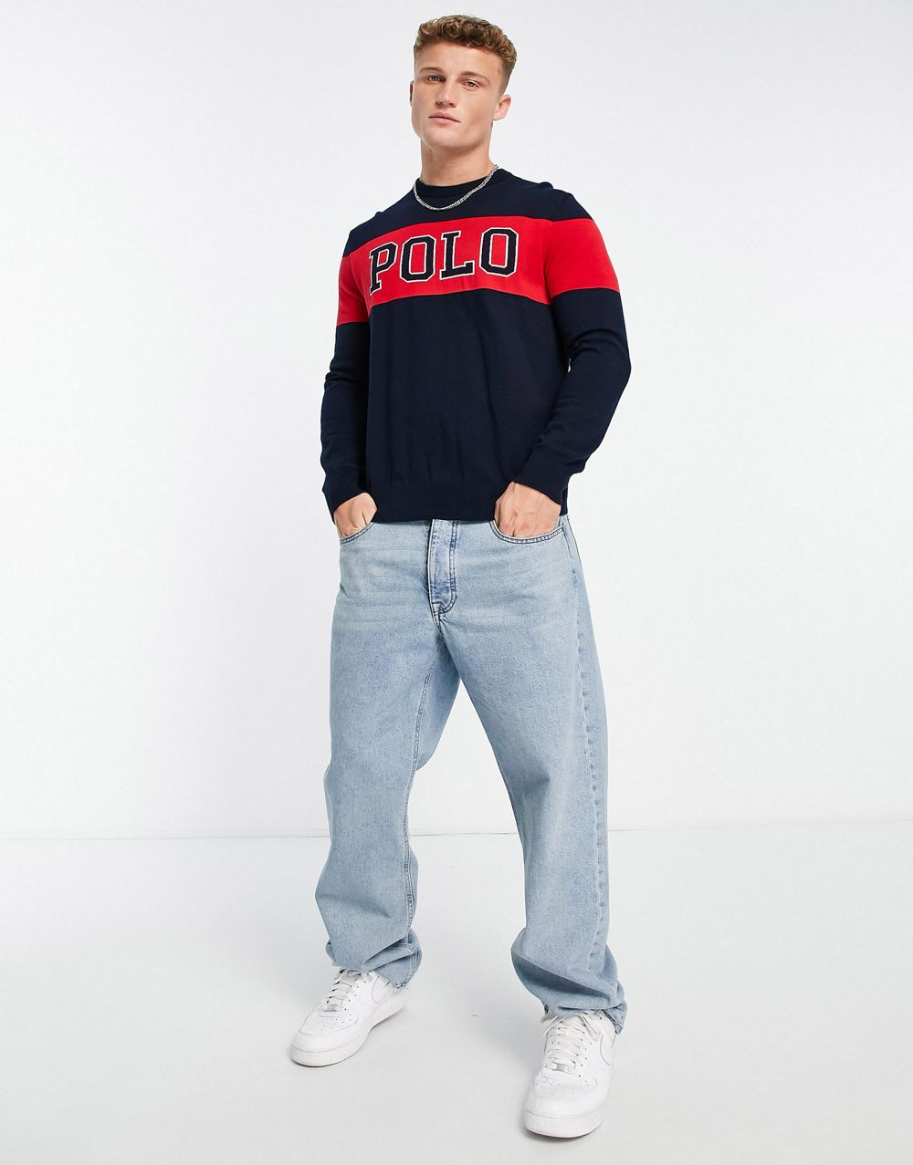 - Polo Ralph Lauren logo chest stripe heavy cotton knit jumper in navy