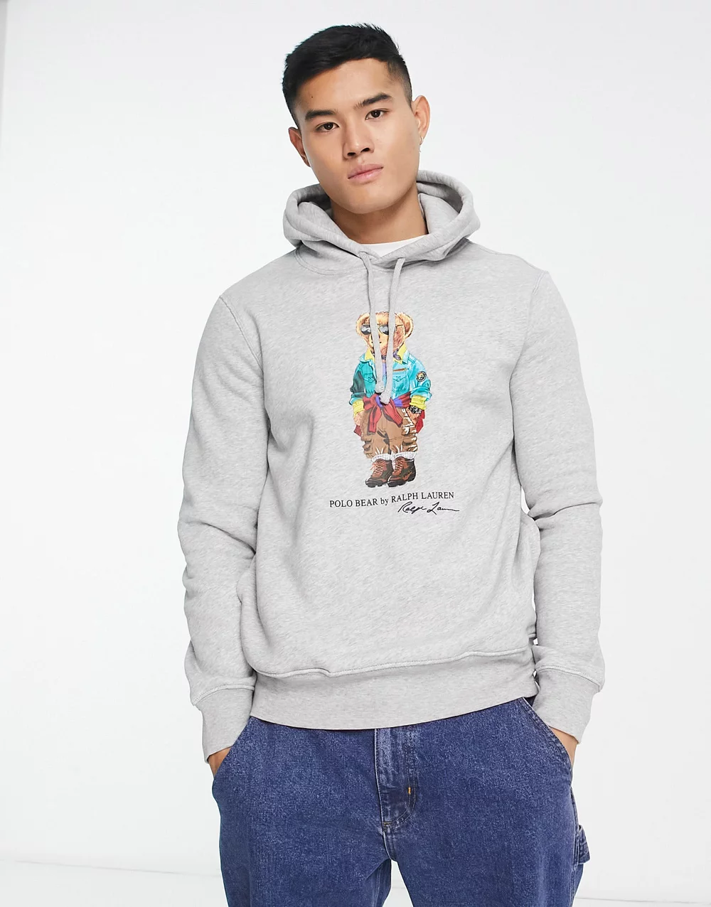 - Polo Ralph Lauren outdoor bear print hoodie in grey marl