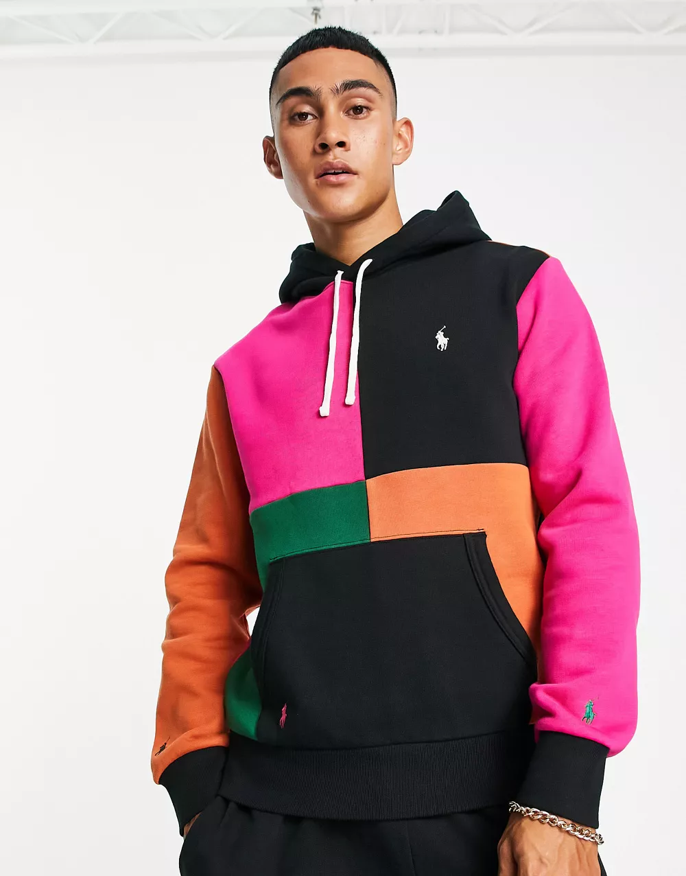 - Polo Ralph Lauren x ASOS exclusive collab hoodie in pink colour block with logo